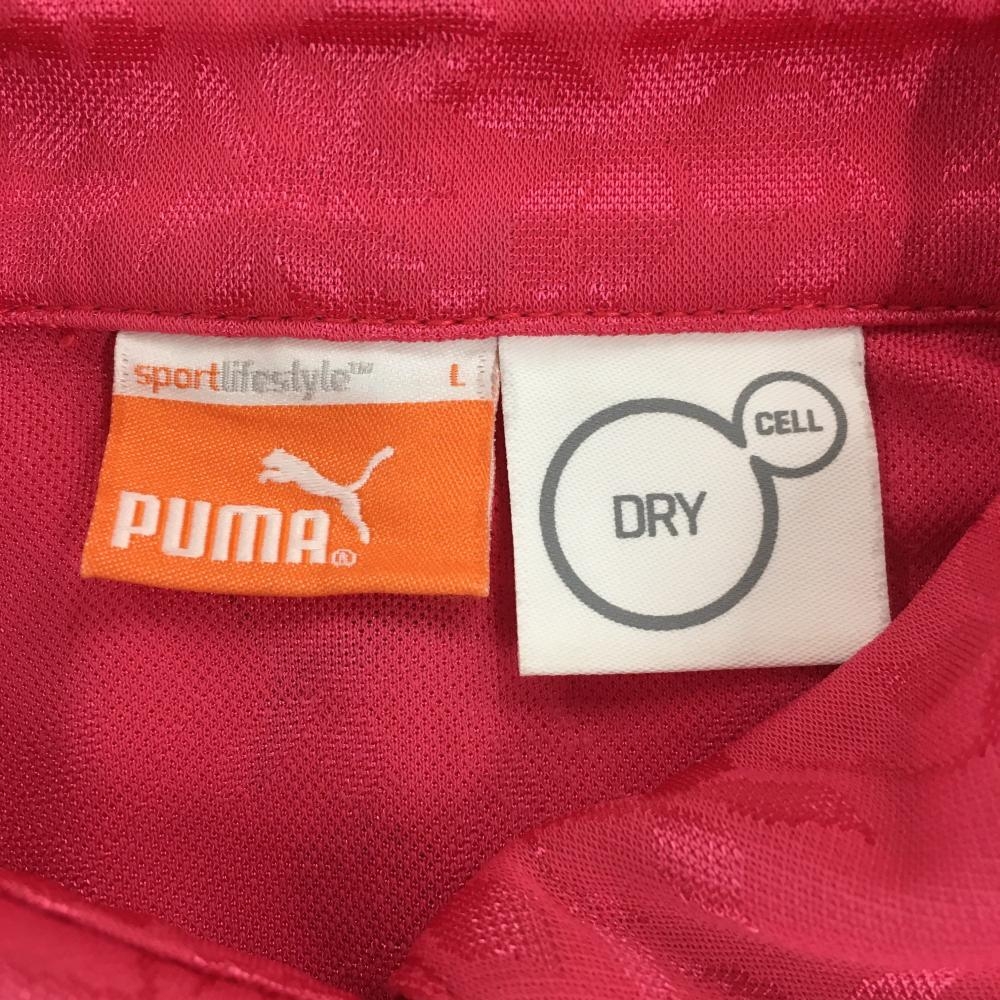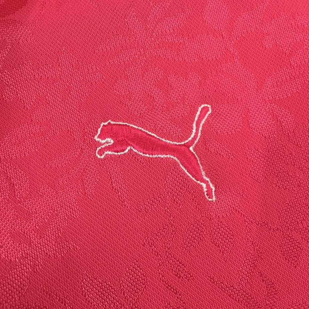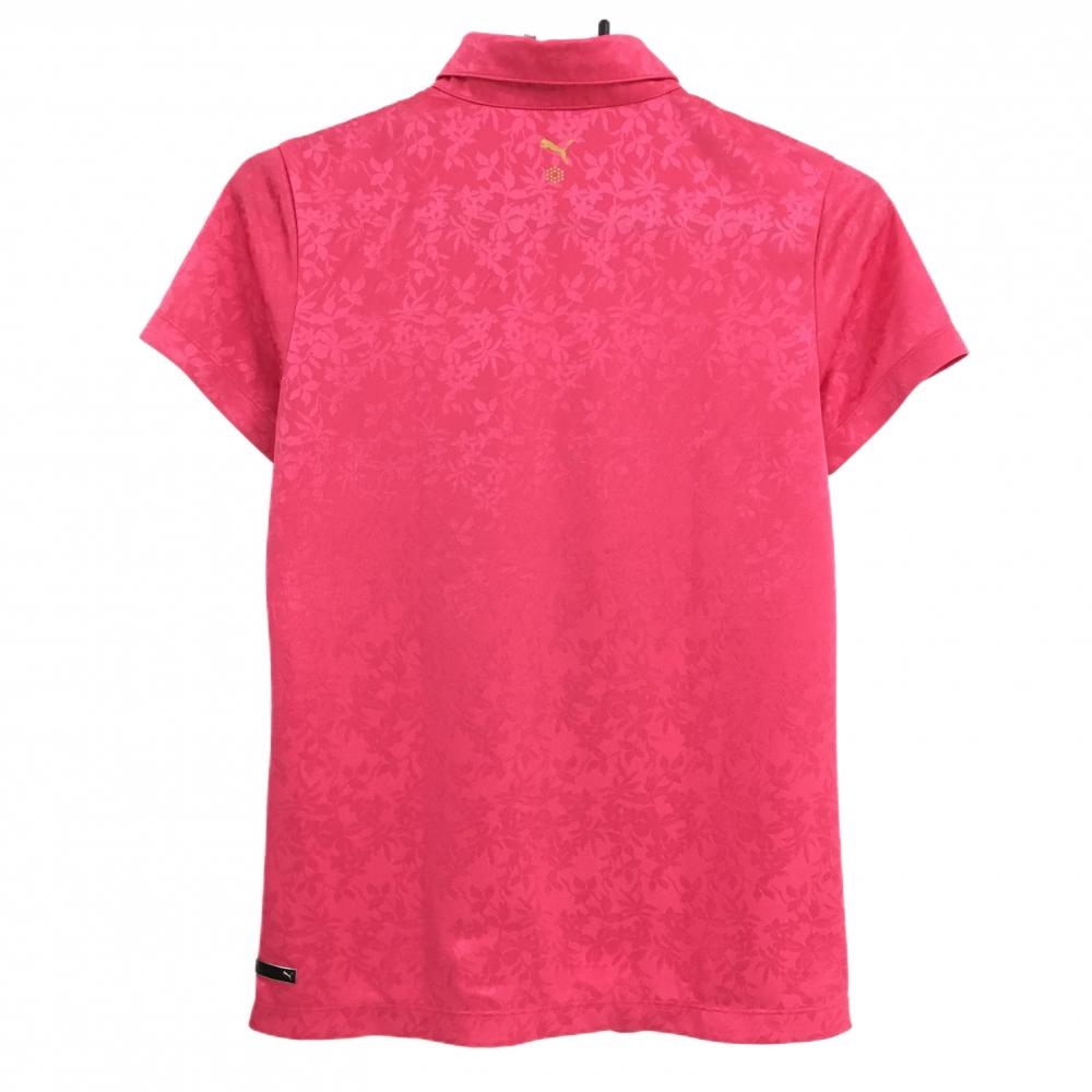 【美品】プーマ 半袖ポロシャツ ピンク リーフ柄地模様 レディース L ゴルフウェア PUMA