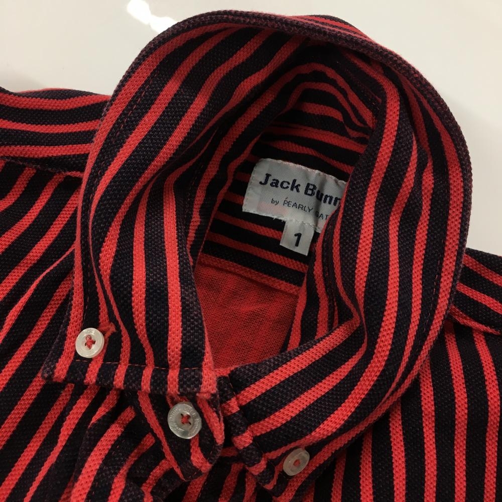 ジャックバニー 長袖シャツ レッド×ネイビー ストライプ ボタンダウン レディース 1(M) ゴルフウェア Jack Bunny