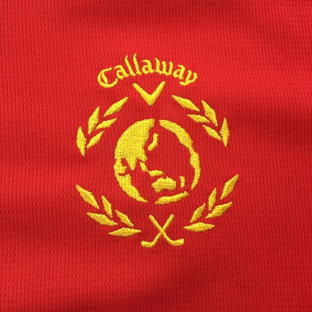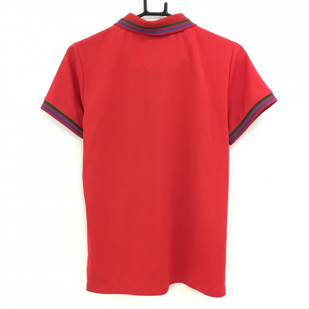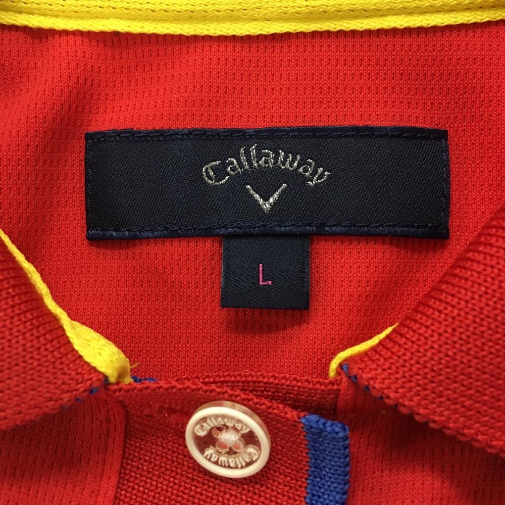 キャロウェイ 半袖ポロシャツ レッド×ブルー×グリーン 襟・袖口ライン 地球儀刺しゅう レディース L ゴルフウェア Callaway