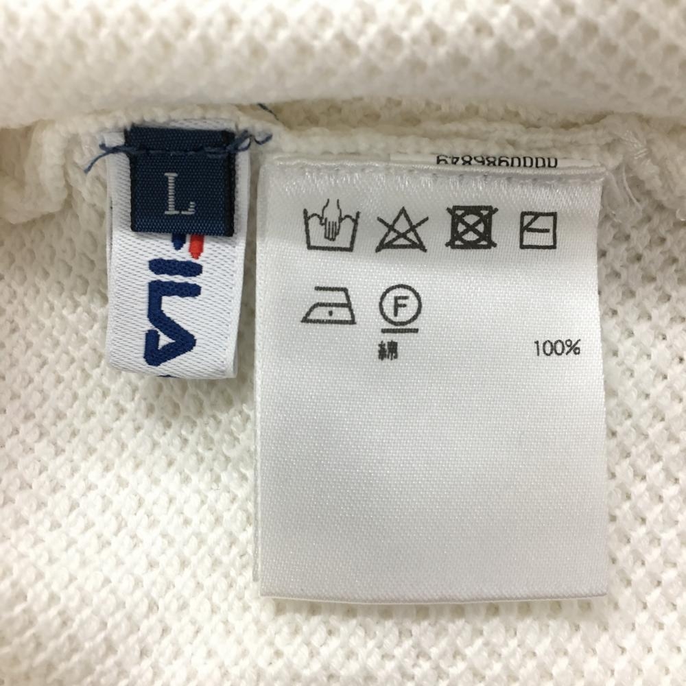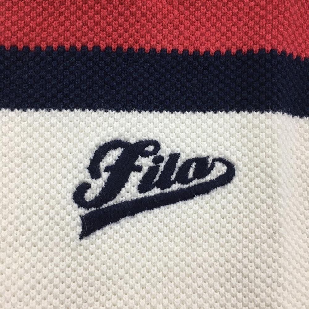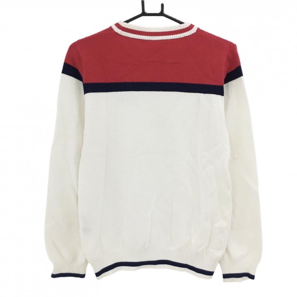 【美品】フィラゴルフ セーター 白×レッド×ネイビー ニット 綿100% レディース L ゴルフウェア FILA GOLF