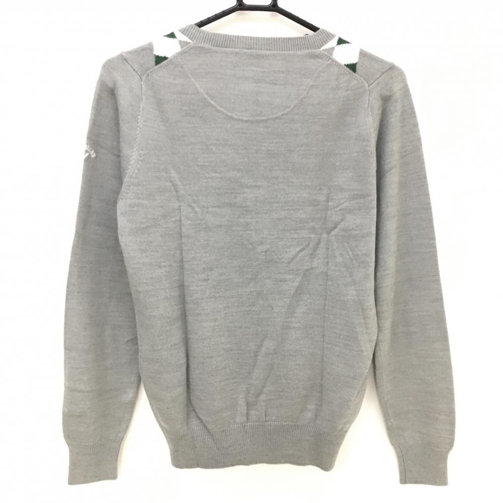 キャロウェイ セーター グレー×グリーン アーガイル風 Vネック ニット レディース M ゴルフウェア Callaway