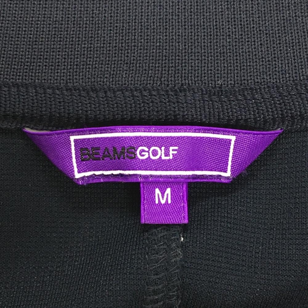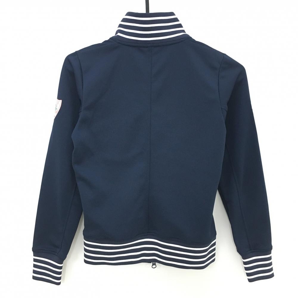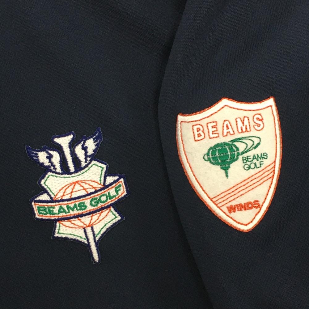 【美品】ビームスゴルフ ジャケットブルゾン ネイビー×白 リブライン 胸元刺しゅう レディース M ゴルフウェア BEAMS GOLF