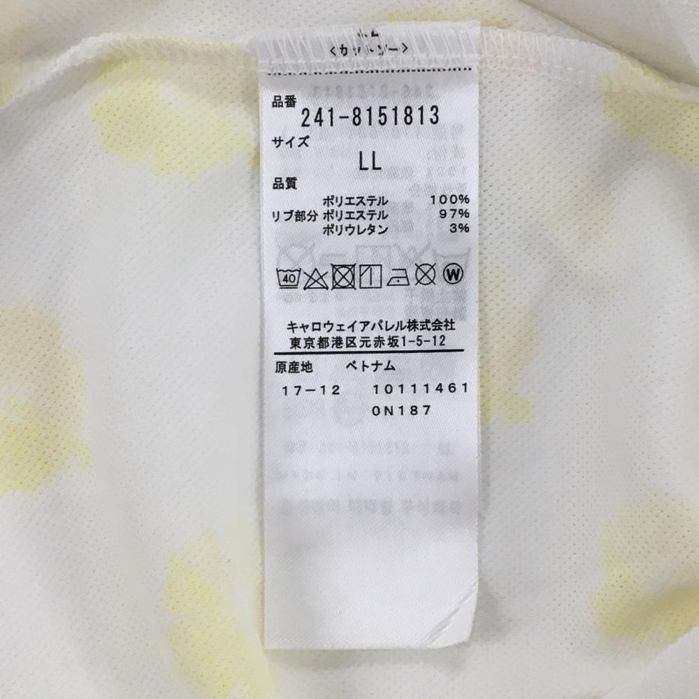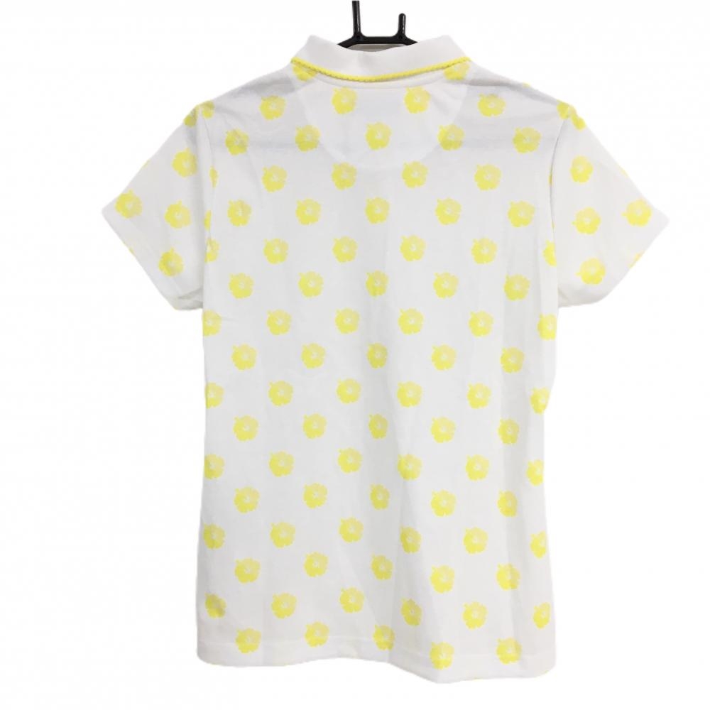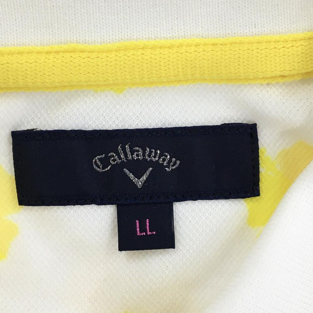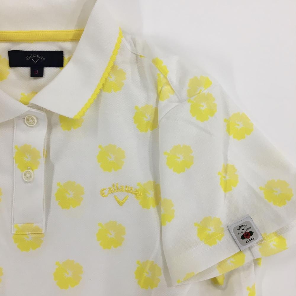 【超美品】キャロウェイ 半袖ポロシャツ 白×イエロー ハイビスカス柄 ロゴ刺しゅう レディース LL ゴルフウェア Callaway