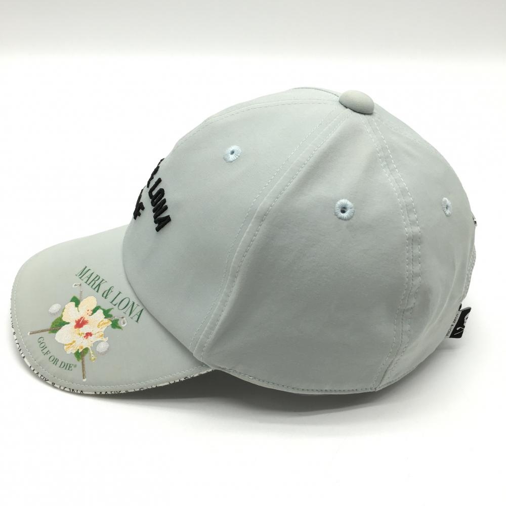 マークアンドロナ キャップ ブルーグレー つば花プリント レディース ゴルフウェア MARK&LONA