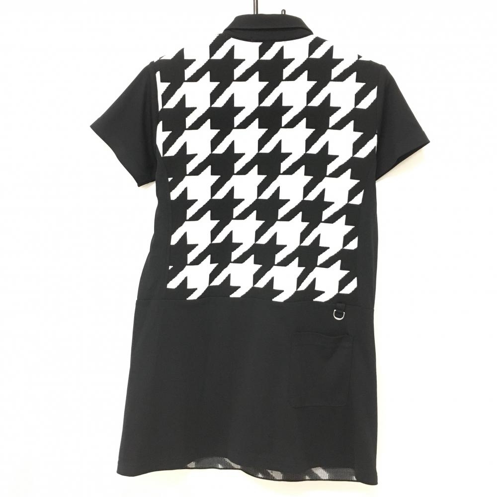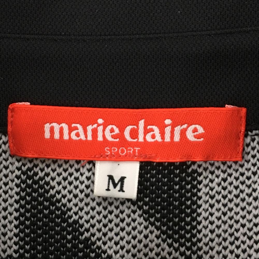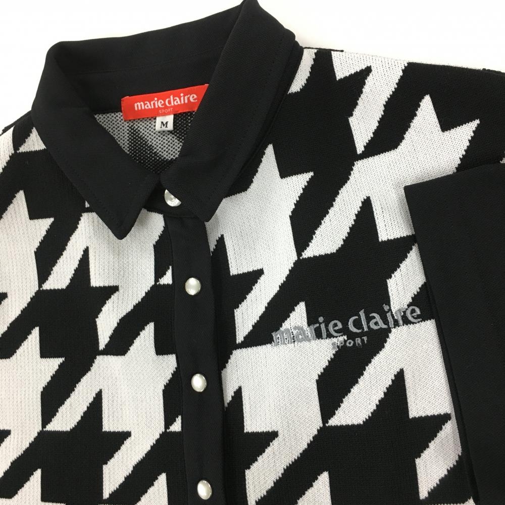 【超美品】マリクレールスポール 半袖ポロワンピース 黒×白 千鳥柄 ニット生地 切替 レディース M ゴルフウェア marie claire