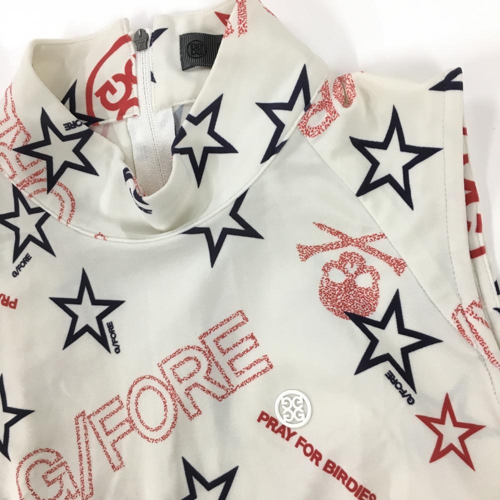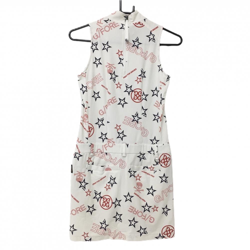 ジーフォア ノースリーブワンピース 白×ネイビー 星柄 ロゴ ハイネック レディース 1036 ゴルフウェア G/FORE