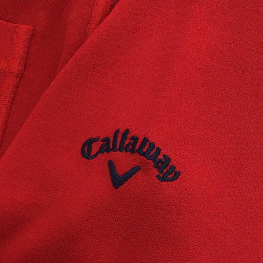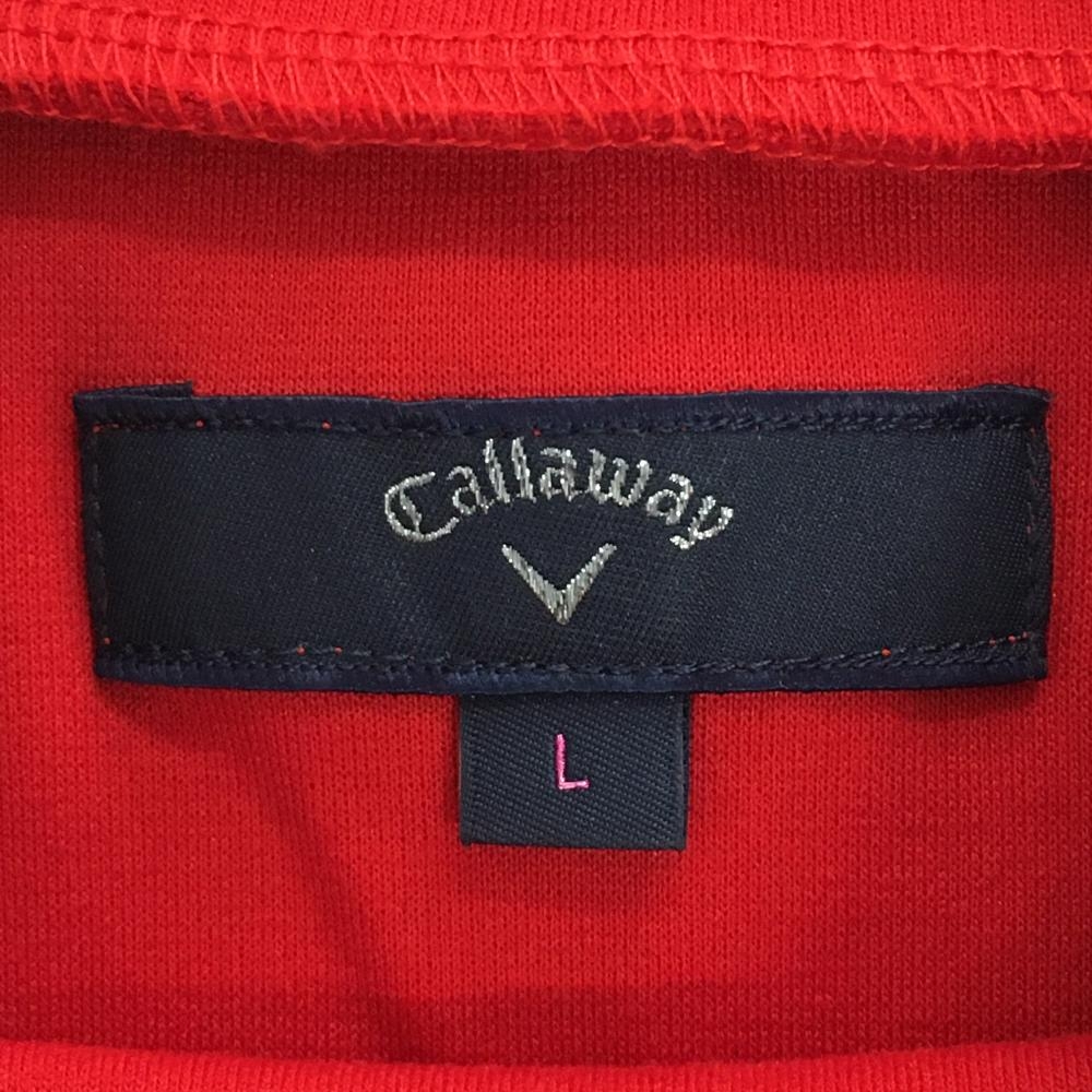 【美品】キャロウェイ 長袖ハイネックシャツ レッド 胸ポケット ロゴネイビー レディース L ゴルフウェア Callaway