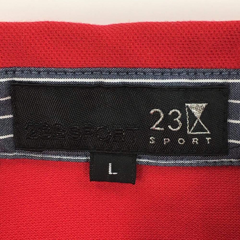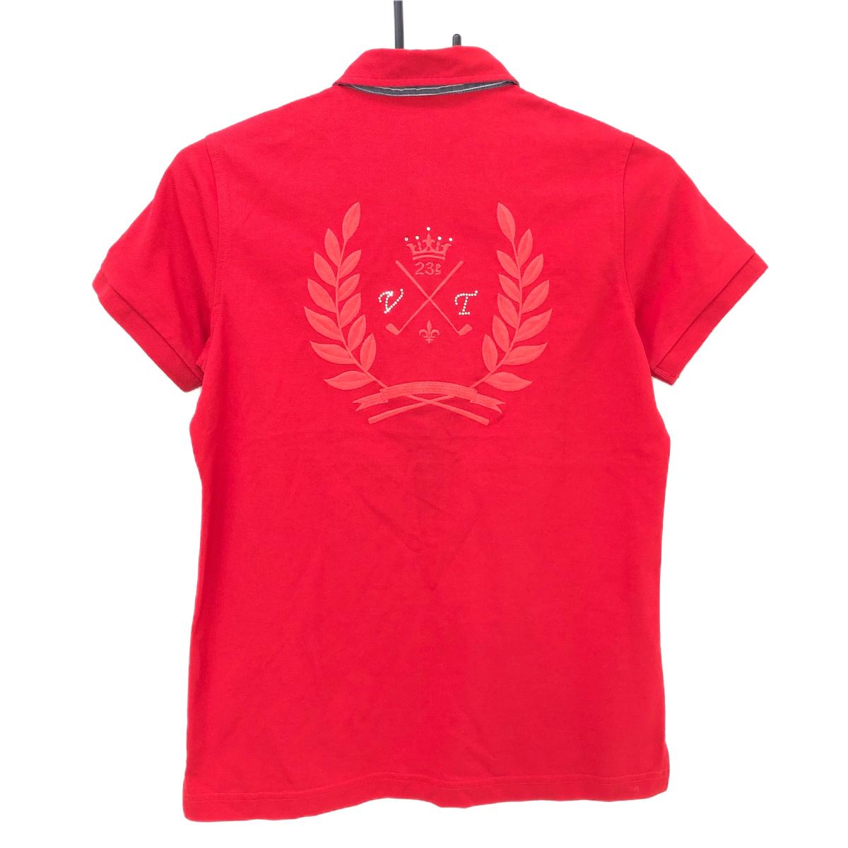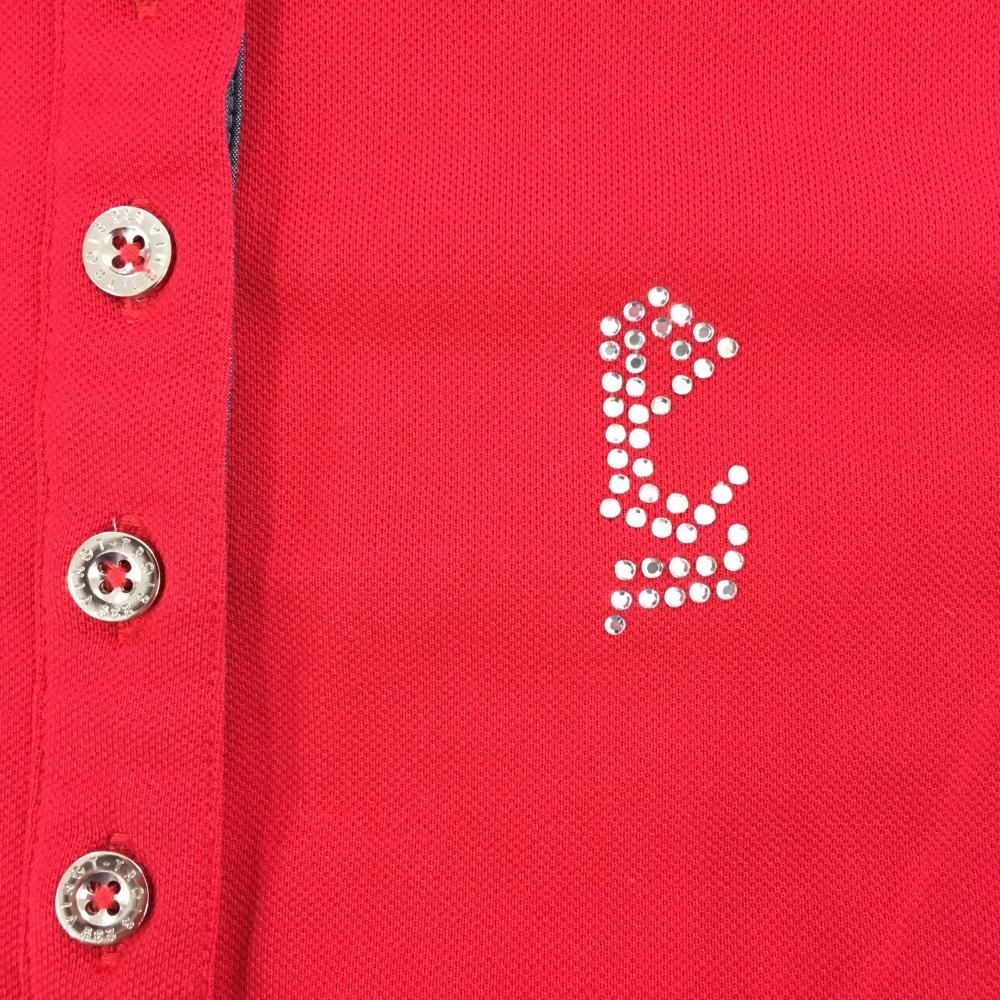 【超美品】23区スポーツ 半袖ポロシャツ レッド 襟・前立て裏ストライプ 胸元ラインストーン レディース L ゴルフウェア 23区