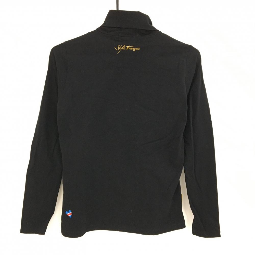【超美品】ルコックゴルフ 長袖タートルネックシャツ 黒×白 胸元プリント レディース L ゴルフウェア le coq sportif