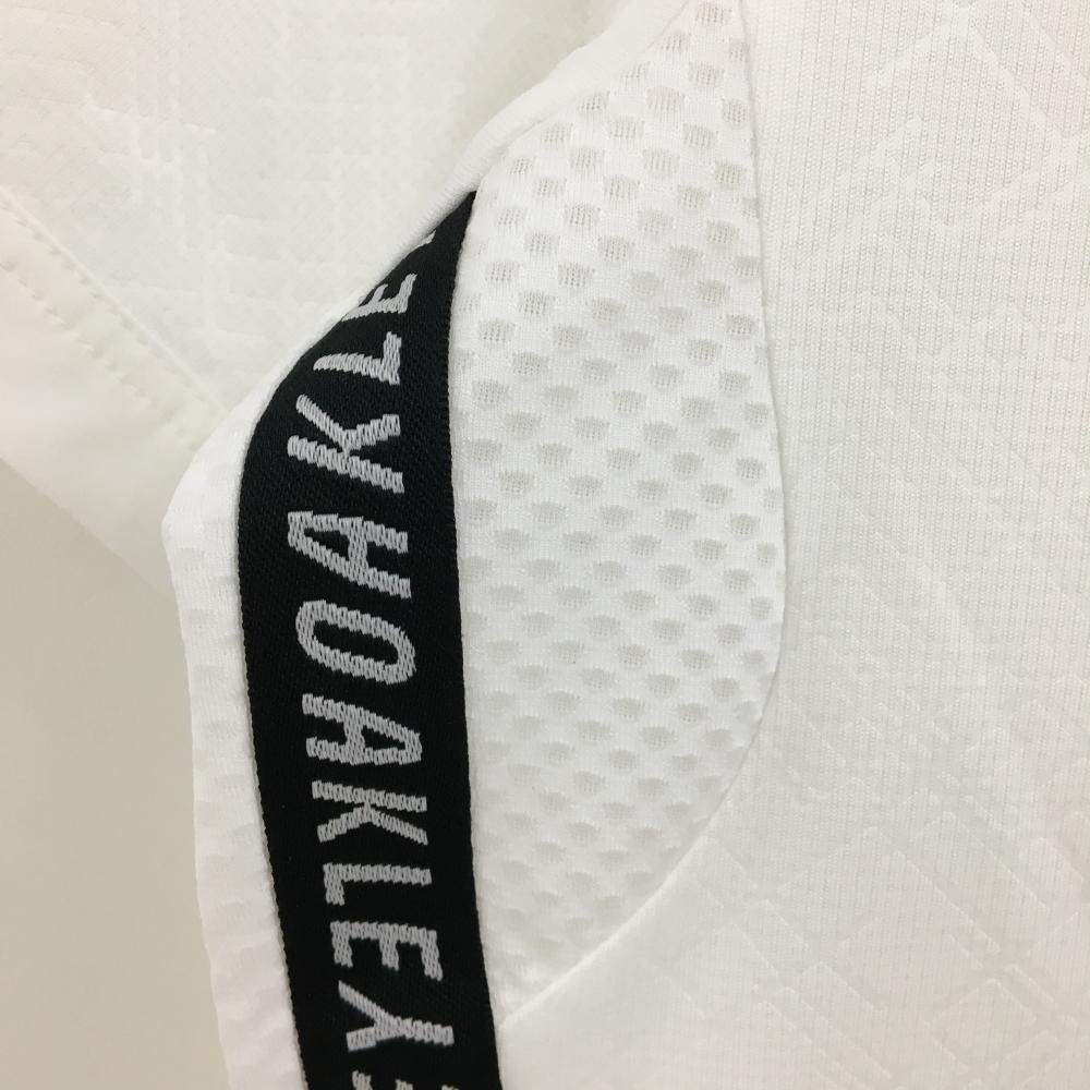 【新品】オークリー 半袖ポロシャツ 白 総柄地模様 一部メッシュ 吸汗速乾 メンズ M ゴルフウェア Oakley