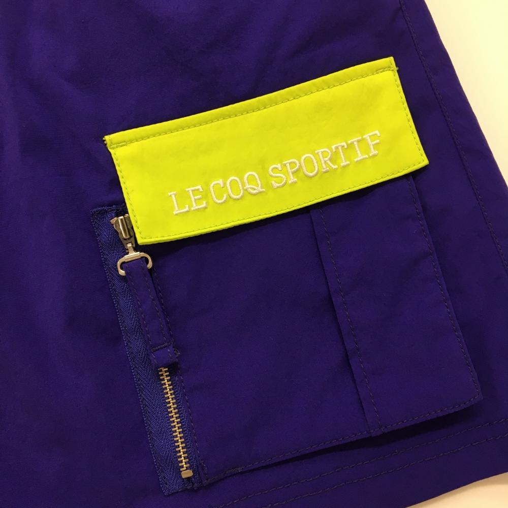 【超美品】ルコックゴルフ スカート パープル×蛍光グリーン 6ポケット レディース 9 ゴルフウェア le coq sportif