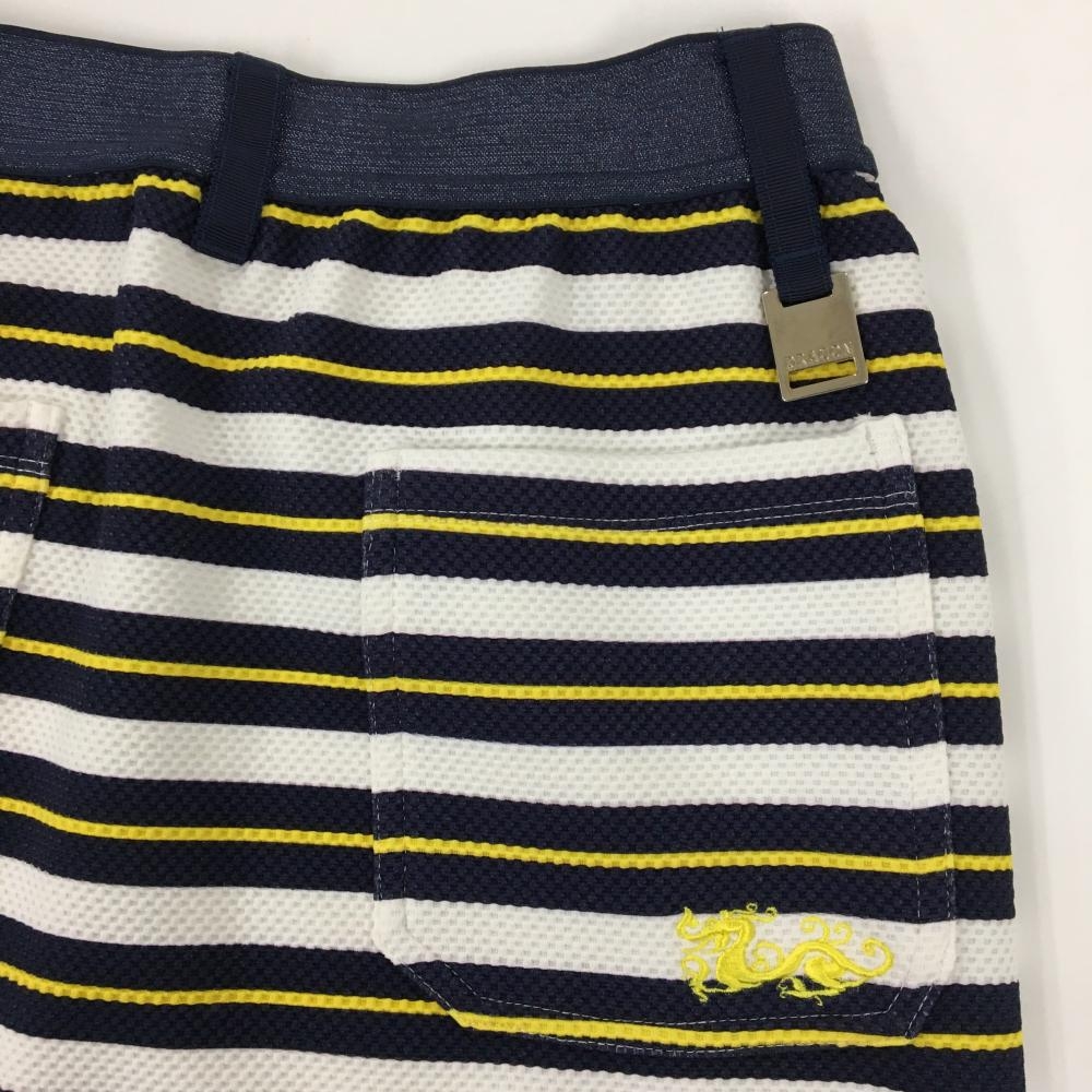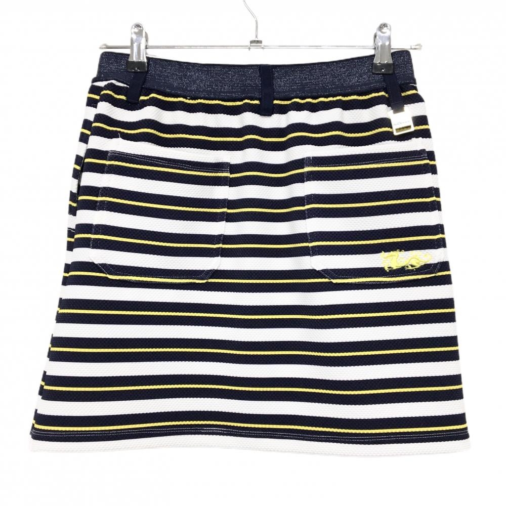 【超美品】ダンスウィズドラゴン スカート ネイビー×白×グリーン ボーダー レディース 2(M) ゴルフウェア Dance With Dragon