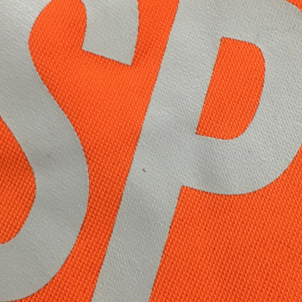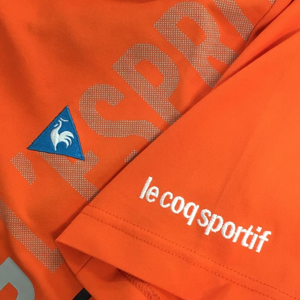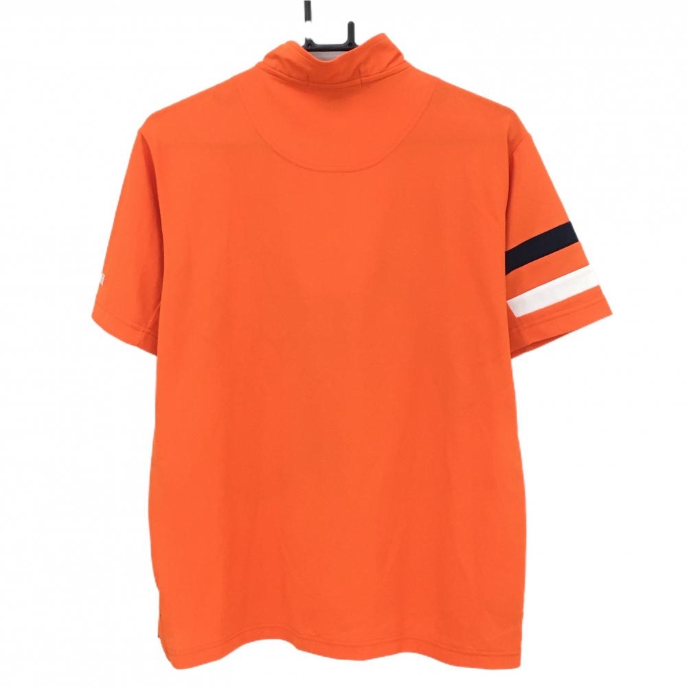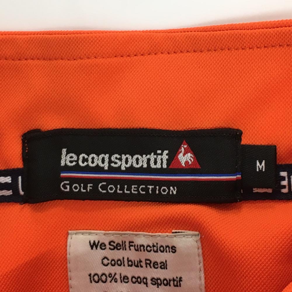 【美品】ルコックゴルフ 半袖ハイネックシャツ オレンジ×ライトグレー ハーフジップ 英字プリント メンズ M ゴルフウェア le coq sportif