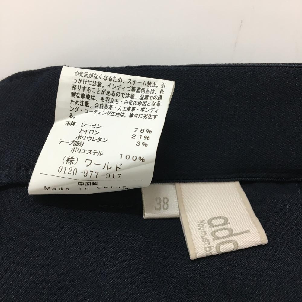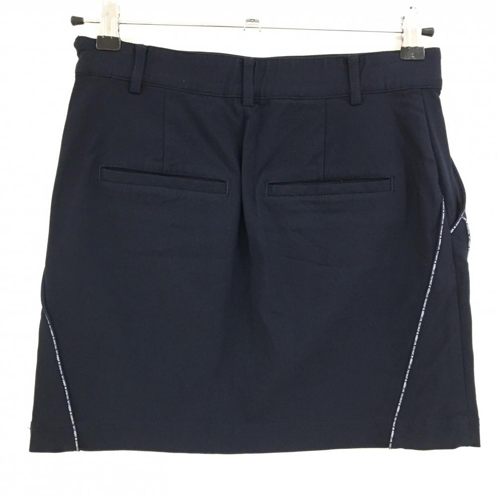 【美品】アダバット ストレッチスカート ダークネイビー×白 パイピング英字 ウエストゴム レディース 38(M) ゴルフウェア adabat