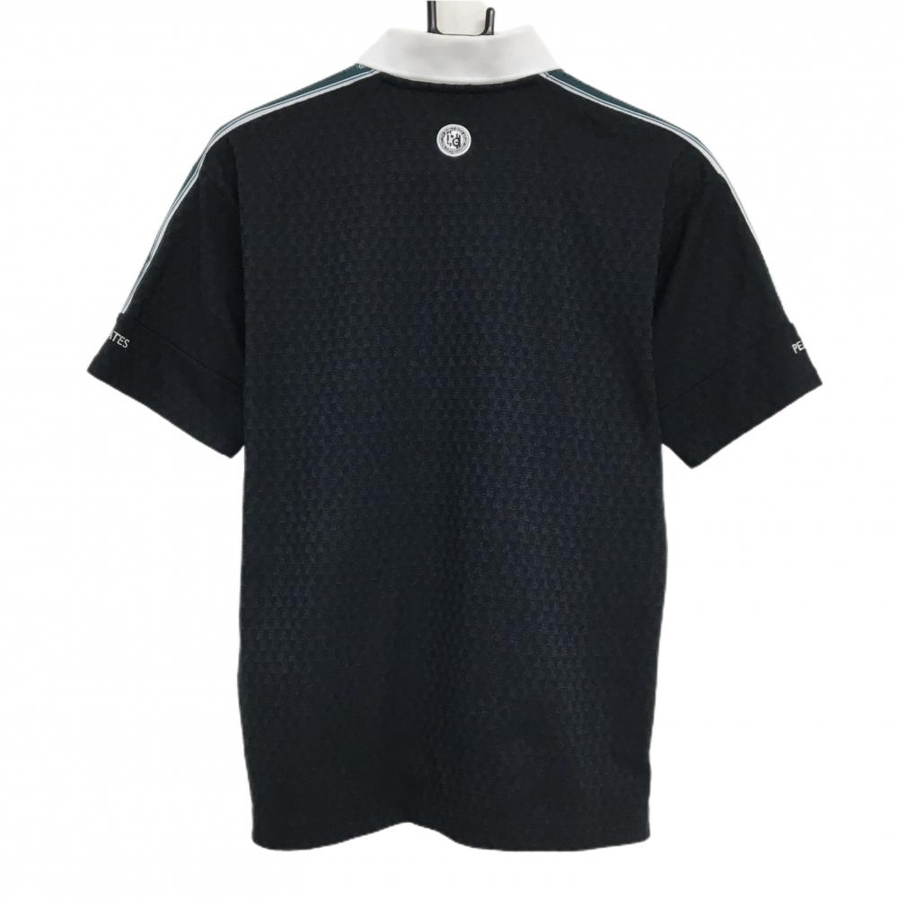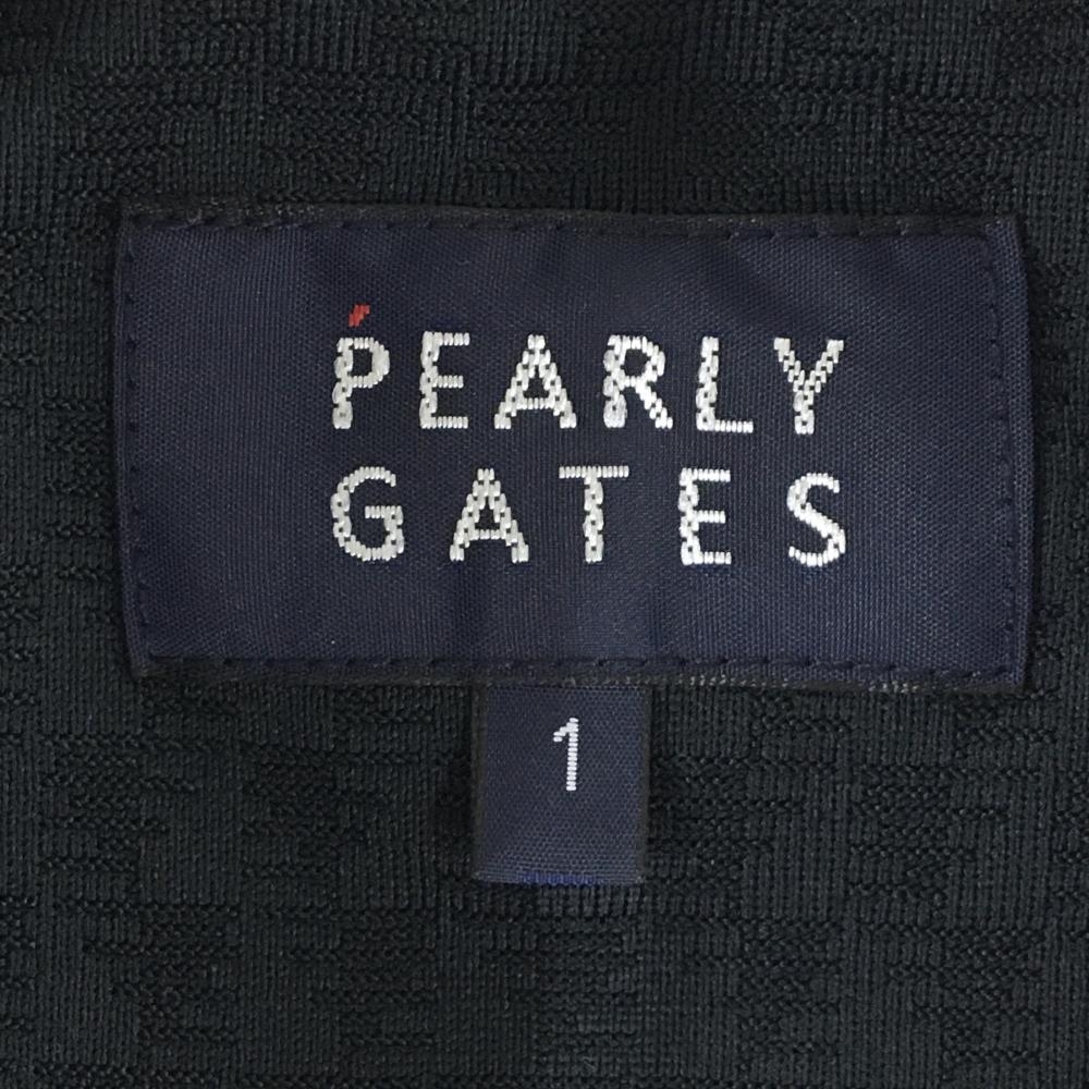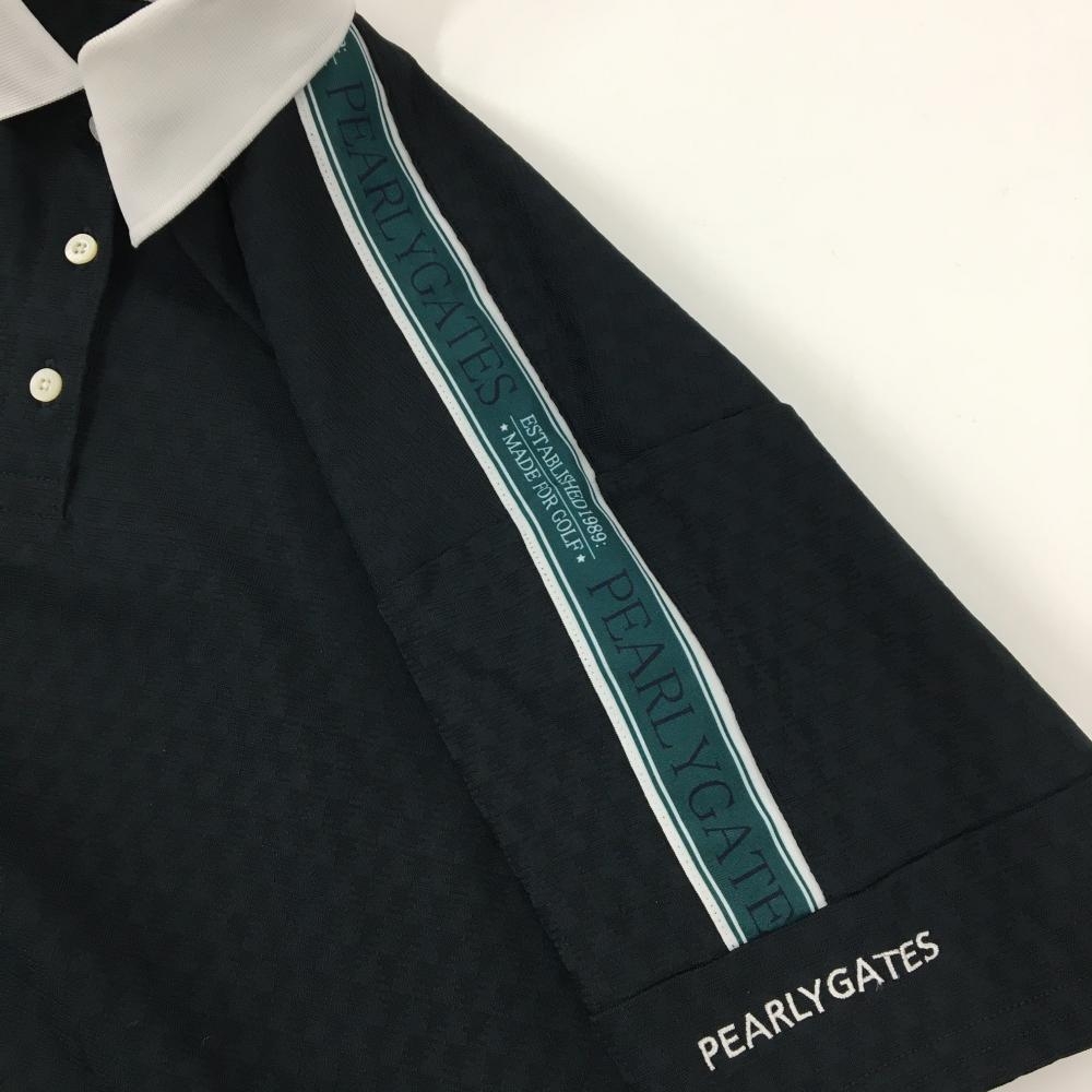 【超美品】パーリーゲイツ 半袖ポロシャツ 黒 総柄地模様 襟白 ロゴライン レディース 1(M) ゴルフウェア 2024年モデル PEARLY GATES