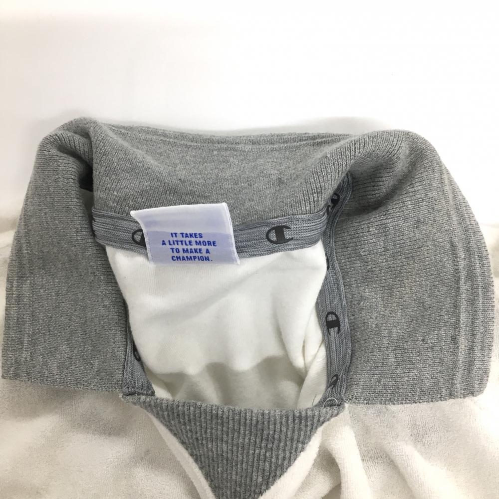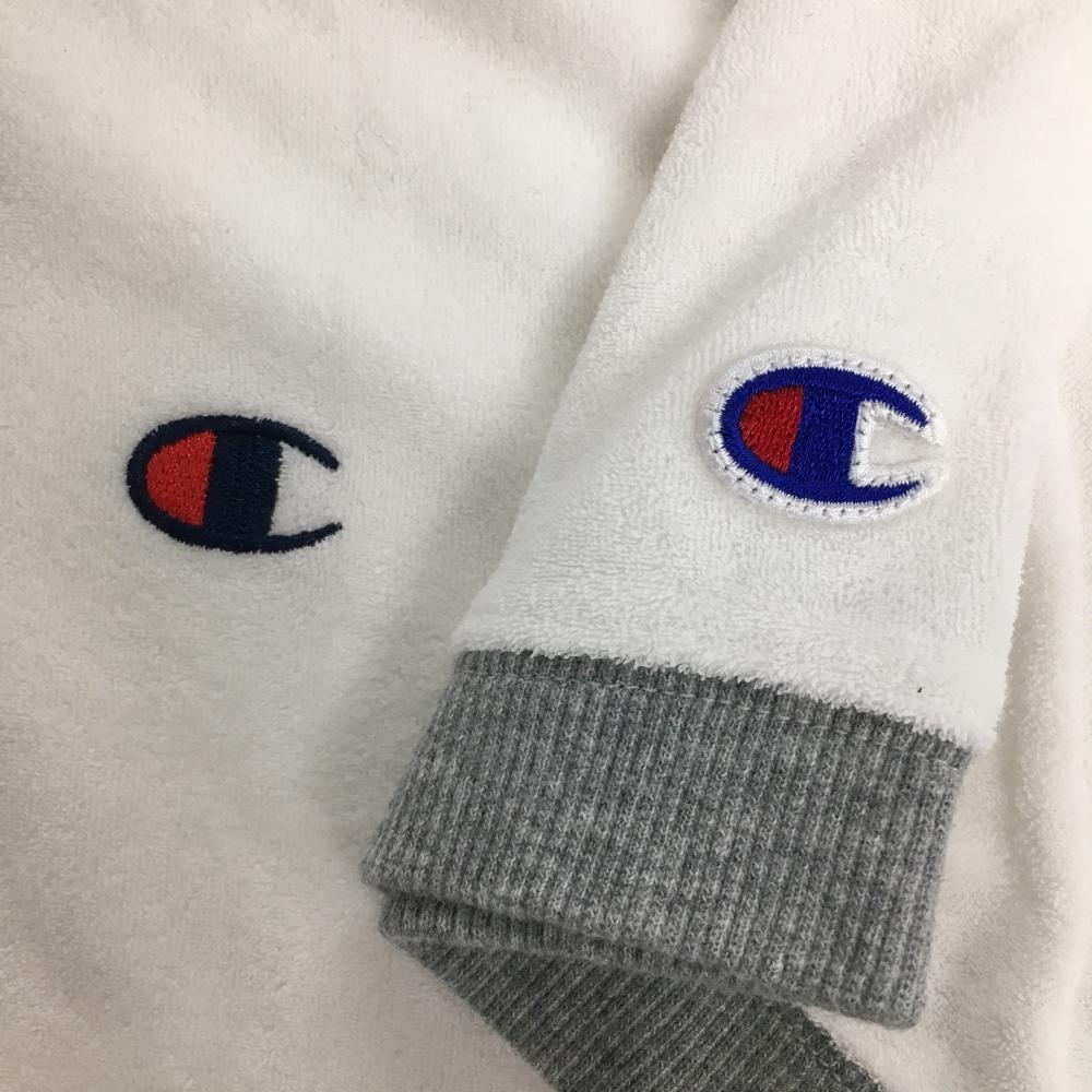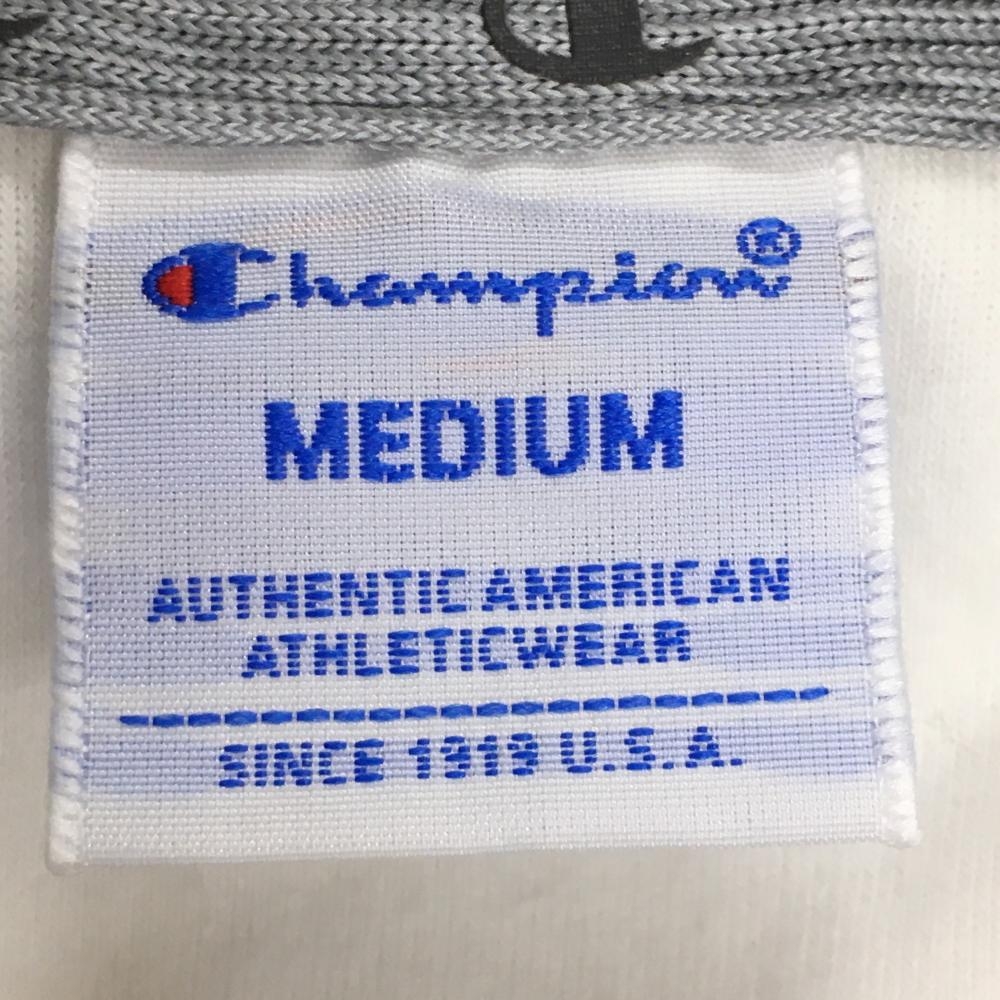 チャンピオン 襟付き半袖シャツ 白×グレー パイル地 袖ワッペン レディース MEDIUM ゴルフウェア Champion