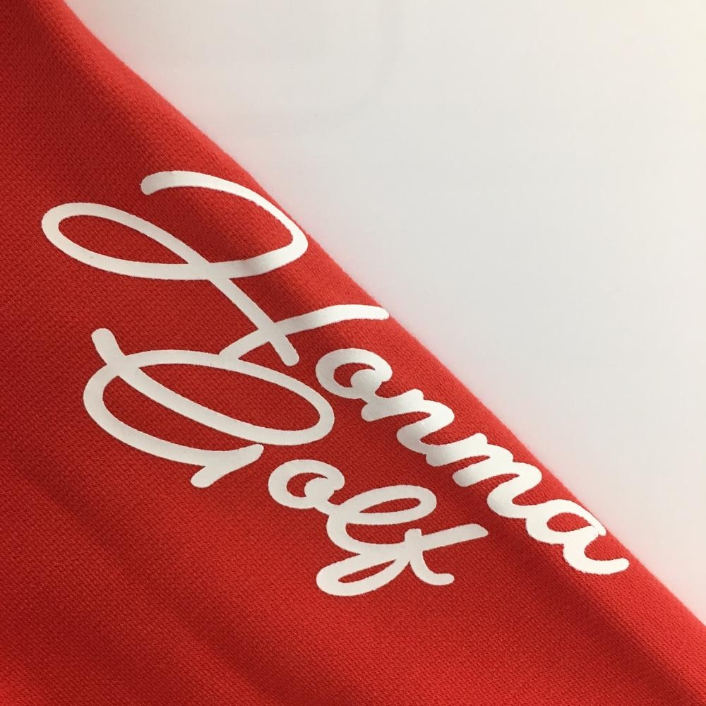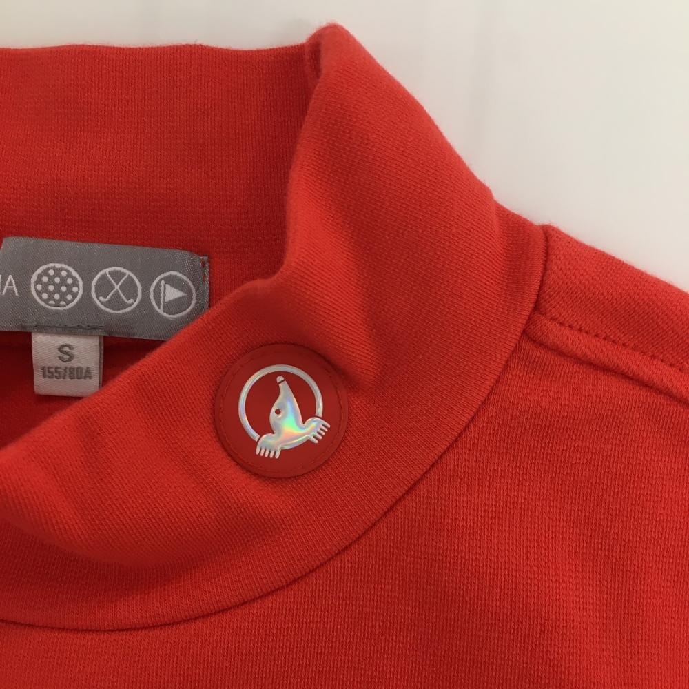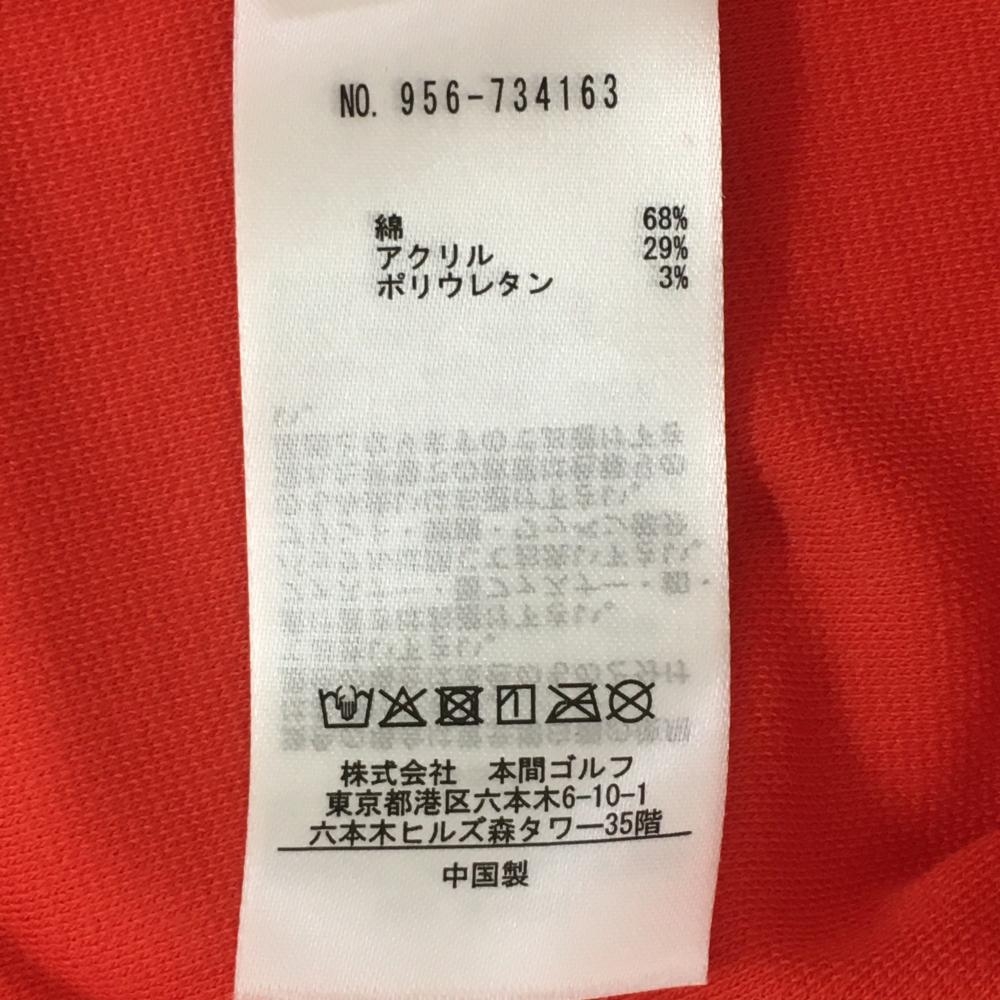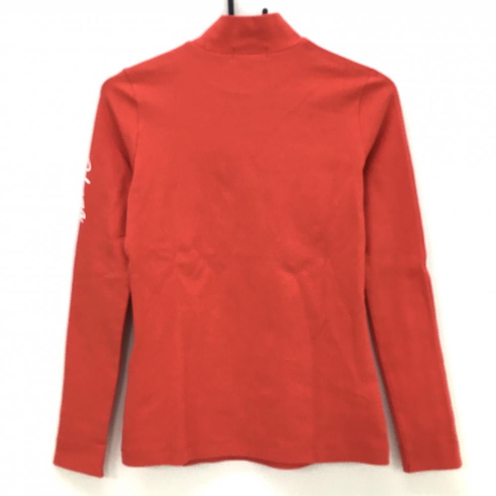 【超美品】ホンマ 長袖ハイネックシャツ オレンジレッド×白 右袖ライン ネックロゴ レディース S ゴルフウェア HONMA