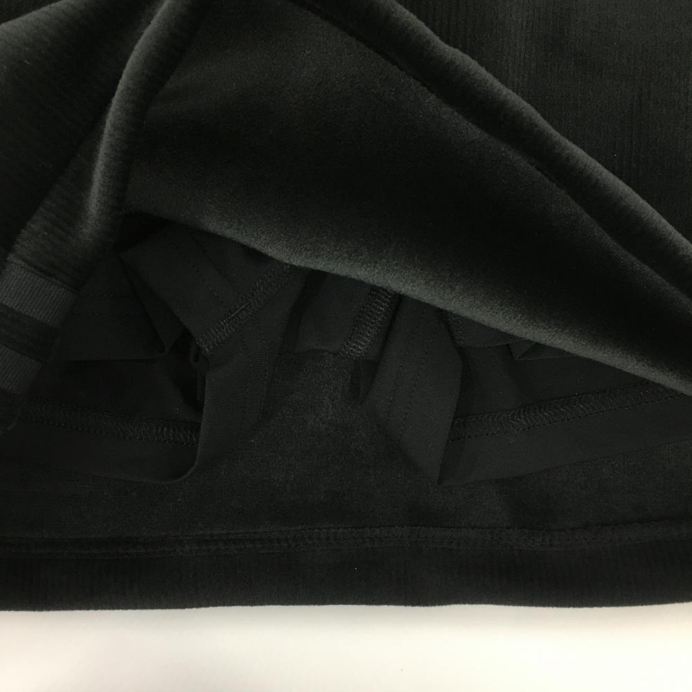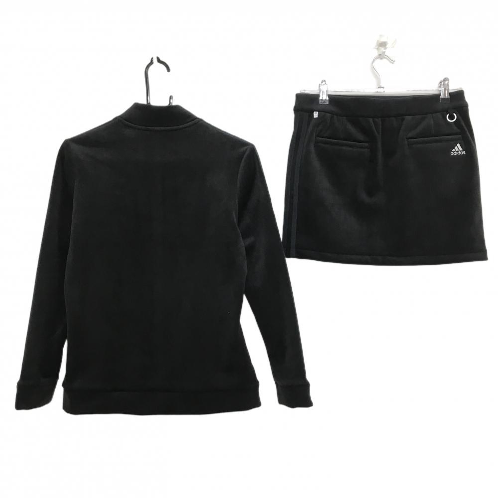 【超美品】アディダス 上下セット(ジャケット×スカート) 黒 ベロア調 ロゴ白 内側インナーパンツ レディース L ゴルフウェア adidas