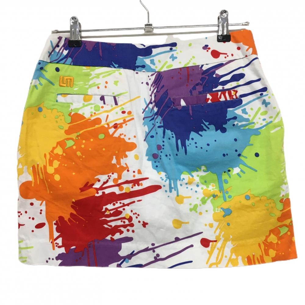 ラウドマウス スカート 白×マルチカラー ドロップクロス 総柄 内側インナーパンツ レディース US-4(XL) ゴルフウェア LOUDMOUTH