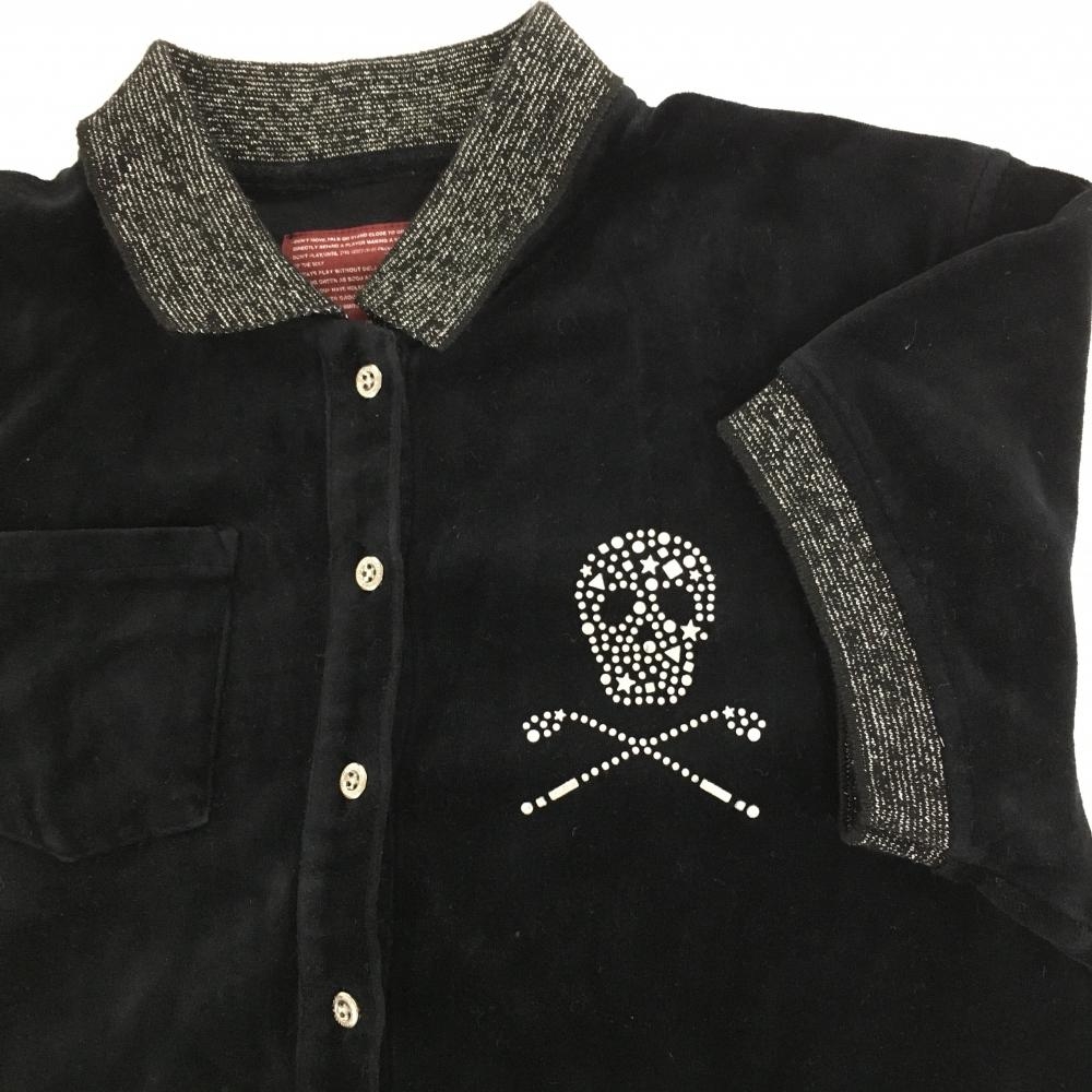 マークアンドロナ オールインワン 黒×シルバー スカル ベロア ラメ レディース S ゴルフウェア MARK&LONA