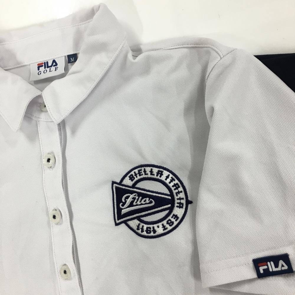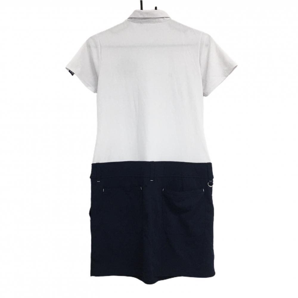 フィラゴルフ 半袖ポロワンピース 白×ネイビー ロゴ刺しゅう レディース M ゴルフウェア FILA GOLF