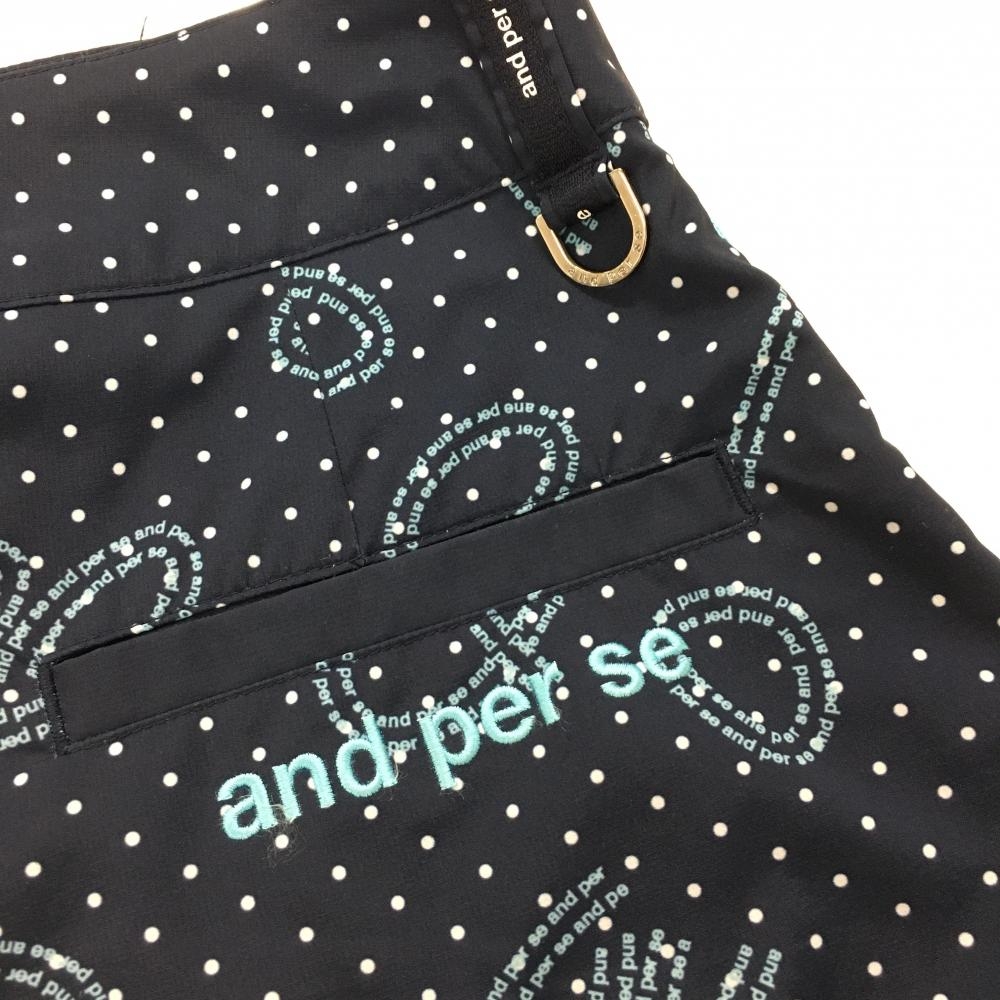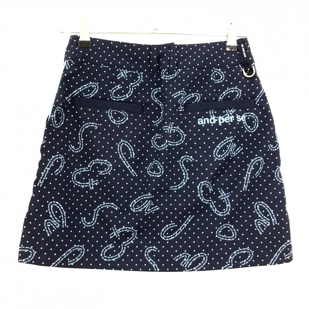 【美品】アンパスィ スカート ネイビー×白×ライトブルー ドット×英字総柄 レディース S ゴルフウェア and per se