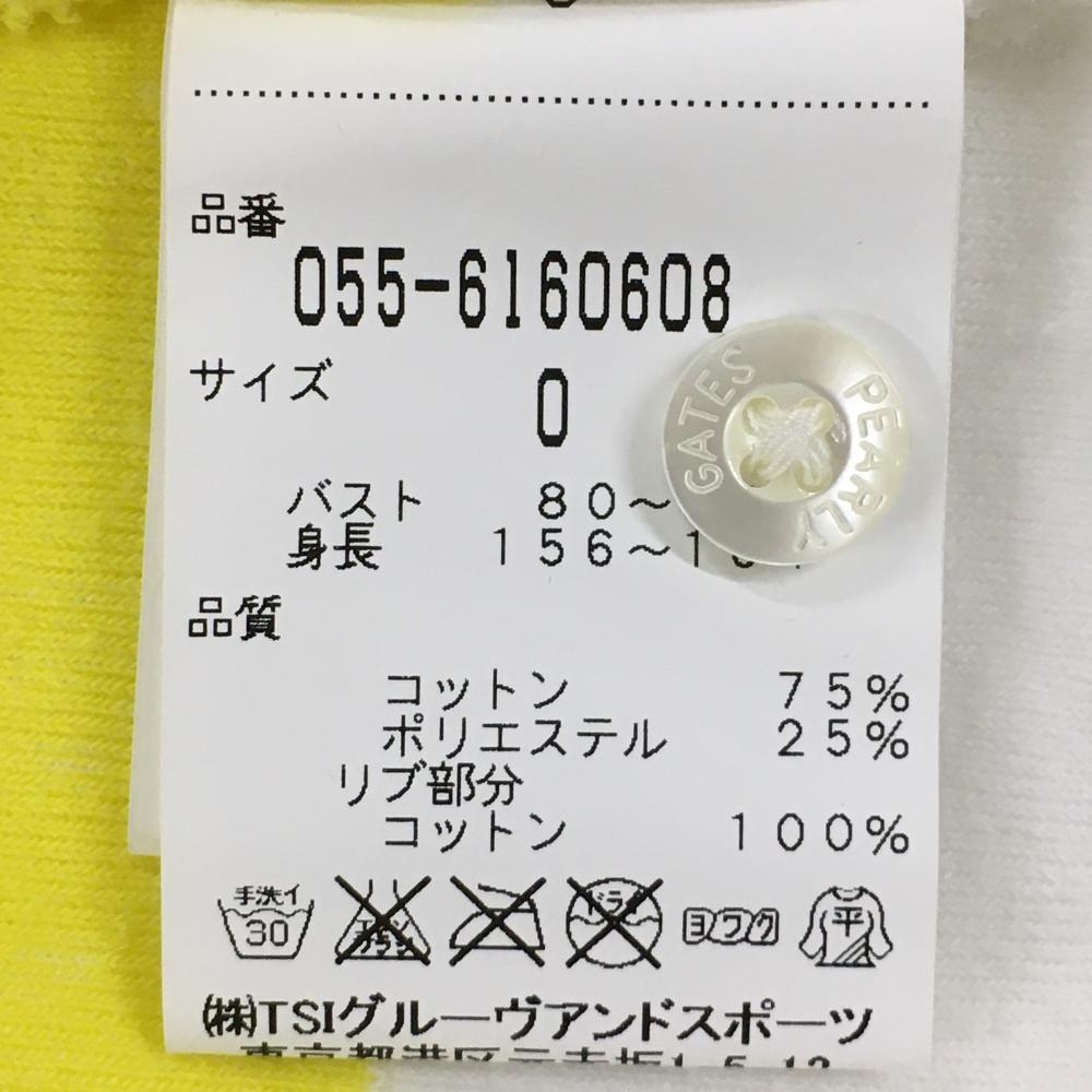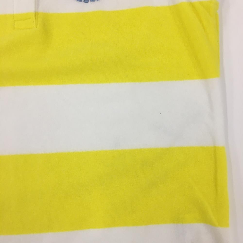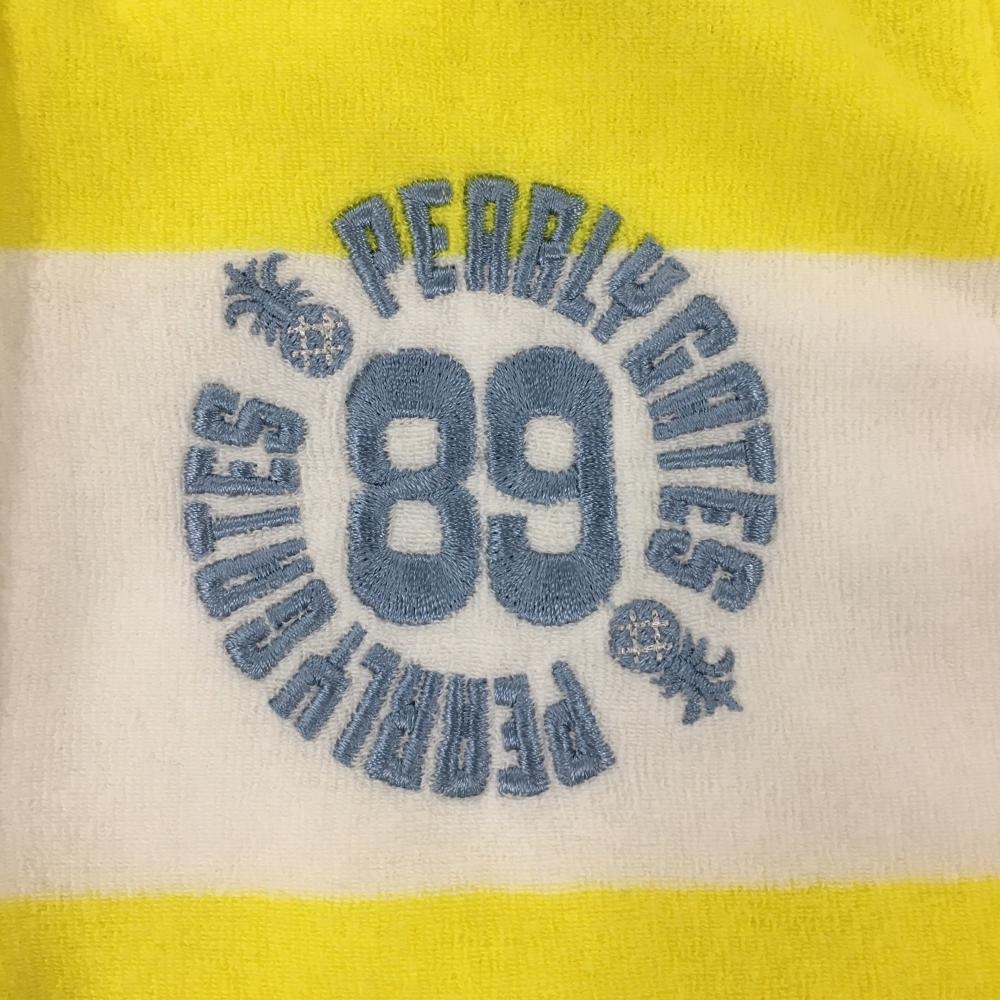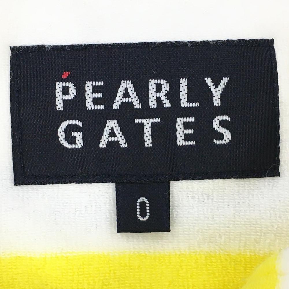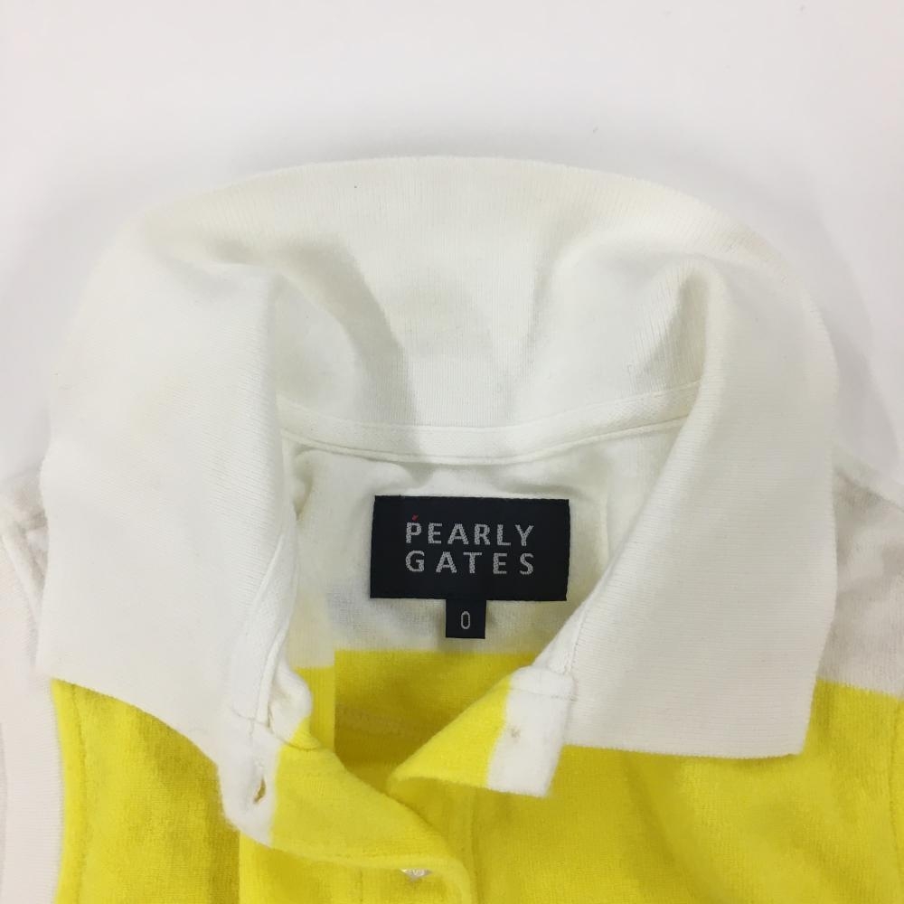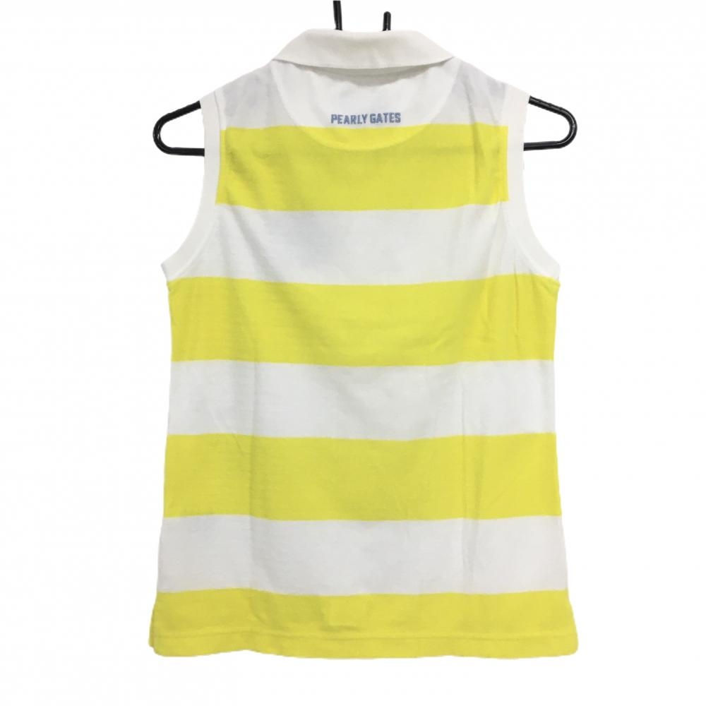 パーリーゲイツ ノースリーブポロシャツ 白×イエロー ボーダー パイル地 胸ロゴ レディース 0(S) ゴルフウェア PEARLY GATES