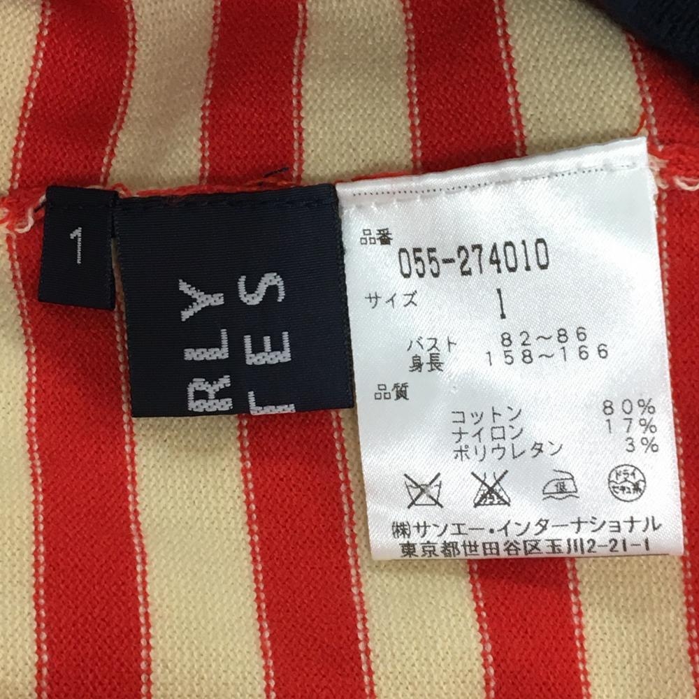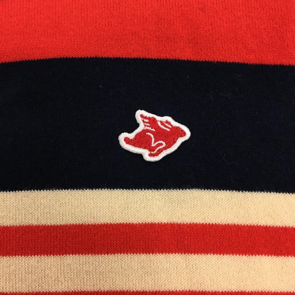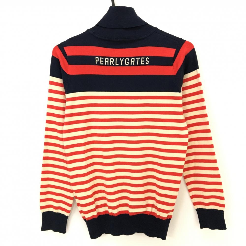 【美品】パーリーゲイツ タートルネックセーター ベージュ×レッド×ネイビー ボーダー ニット レディース 1(M) ゴルフウェア PEARLY GATES