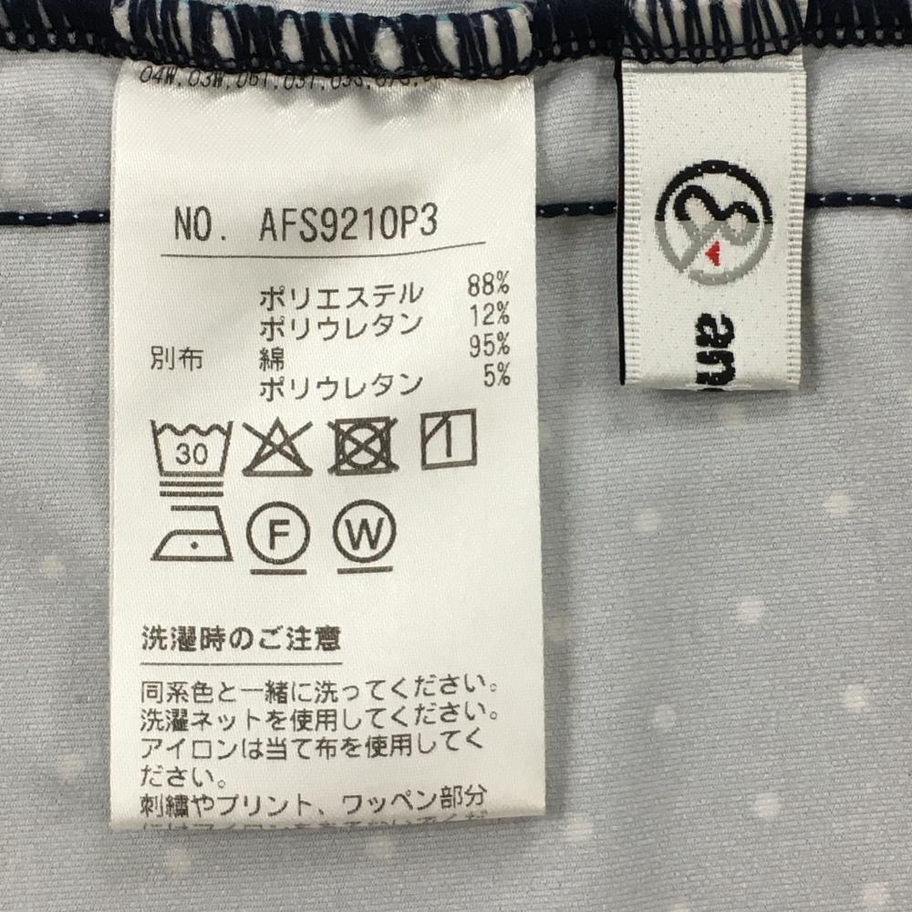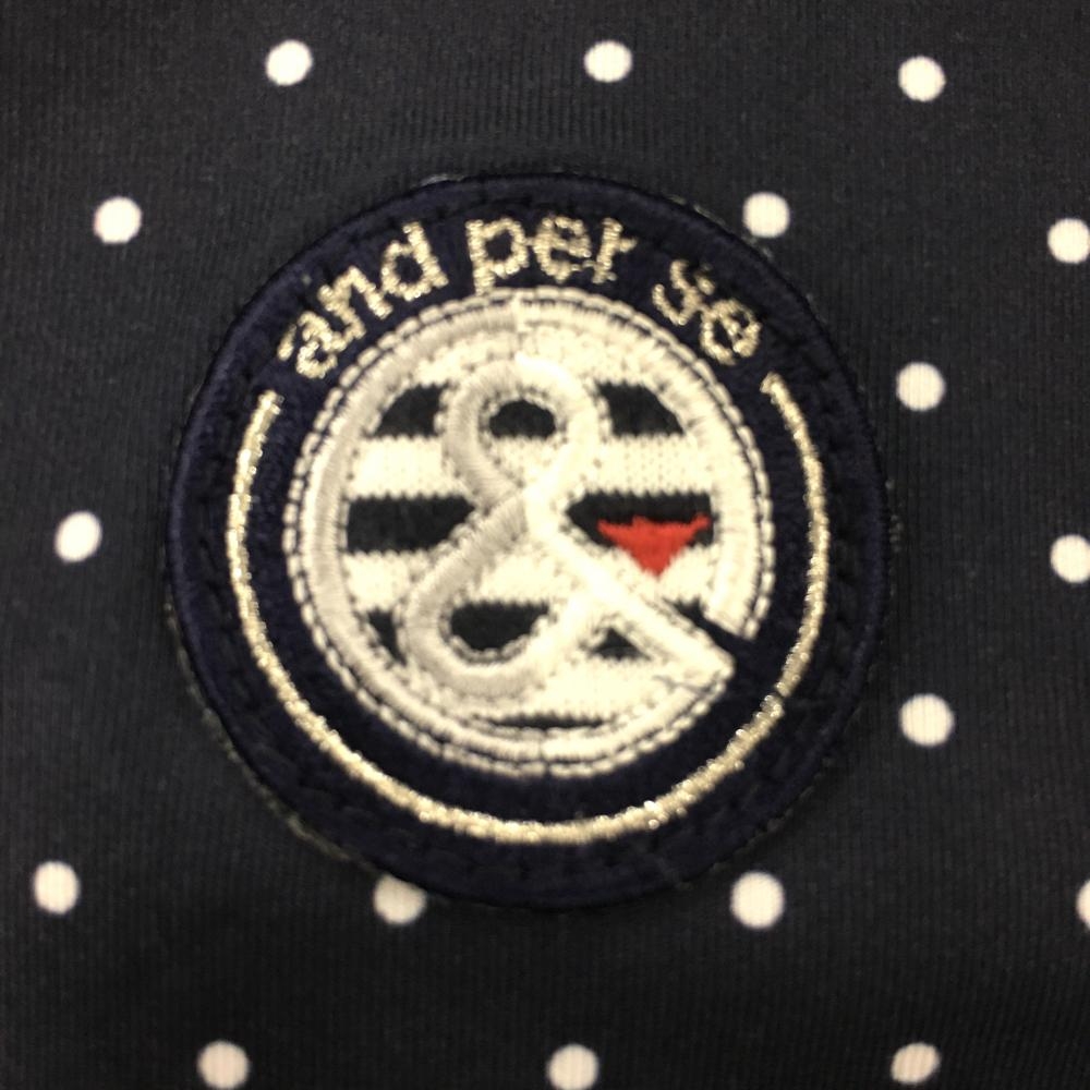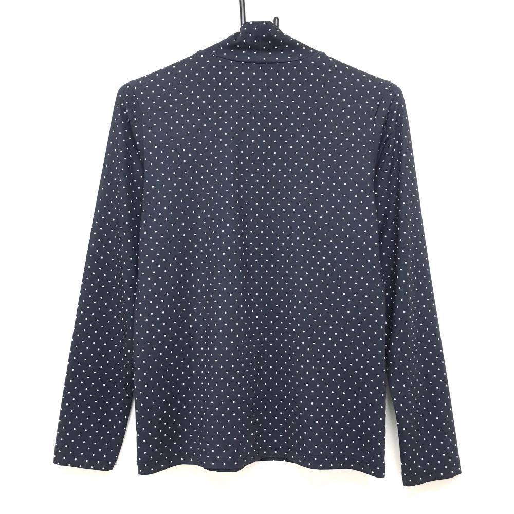 【美品】アンパスィ 長袖ハイネックシャツ ダークネイビー×白 ドットビックプリント レディース M ゴルフウェア and per se