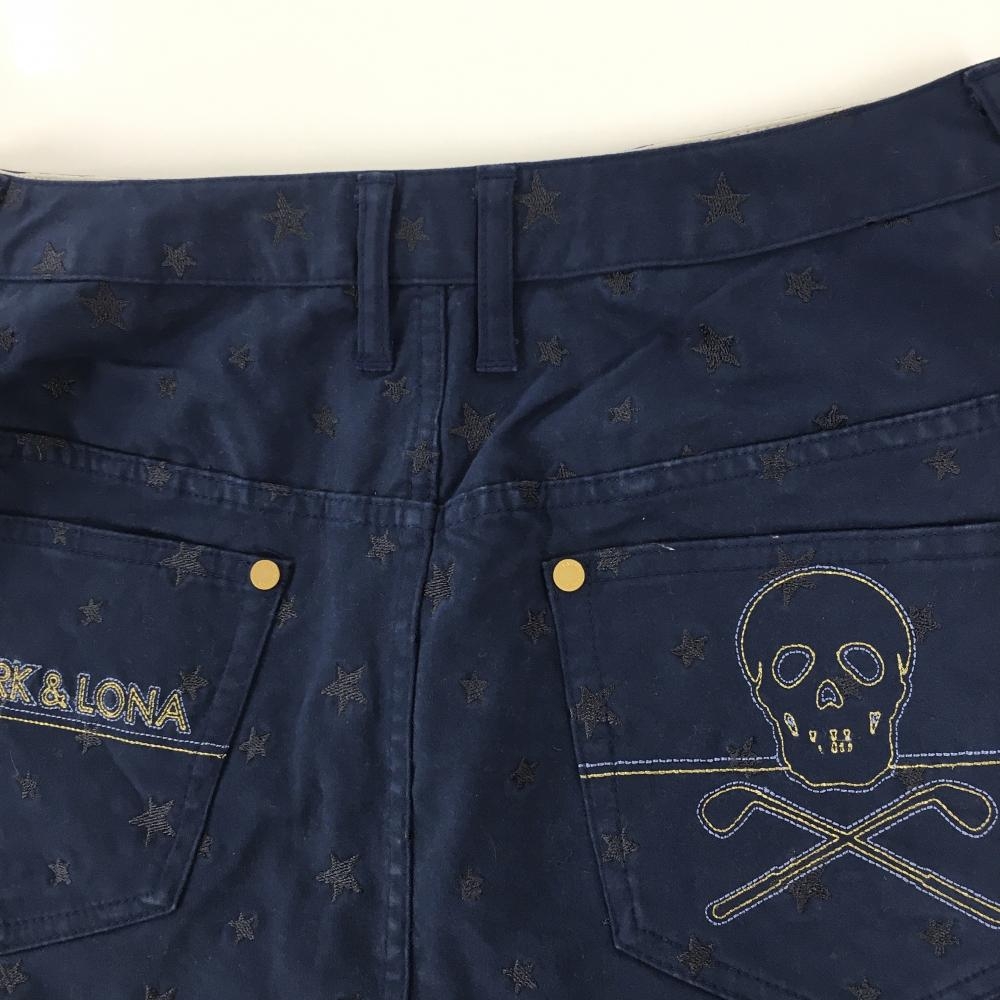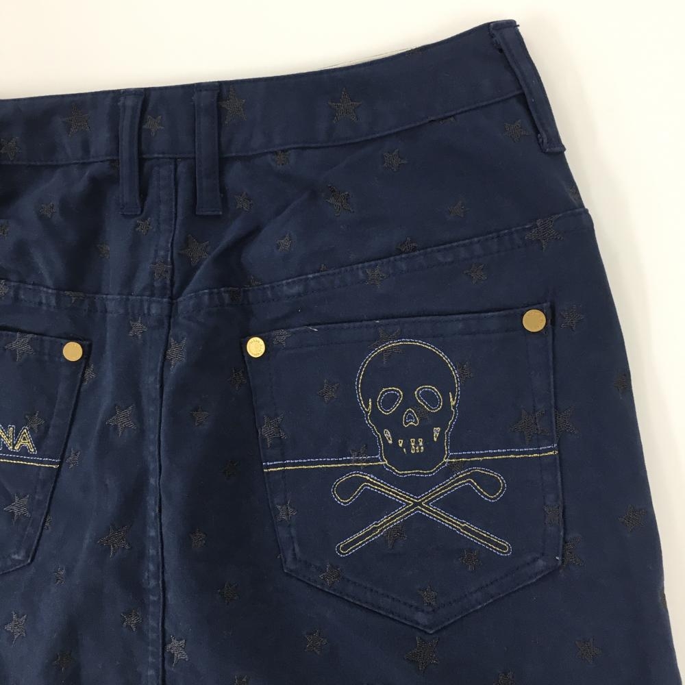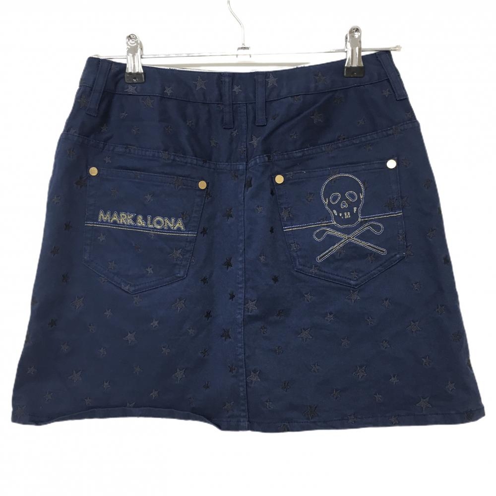 マークアンドロナ スカート ネイビー 星刺しゅう総柄スカル レディース M ゴルフウェア MARK&LONA