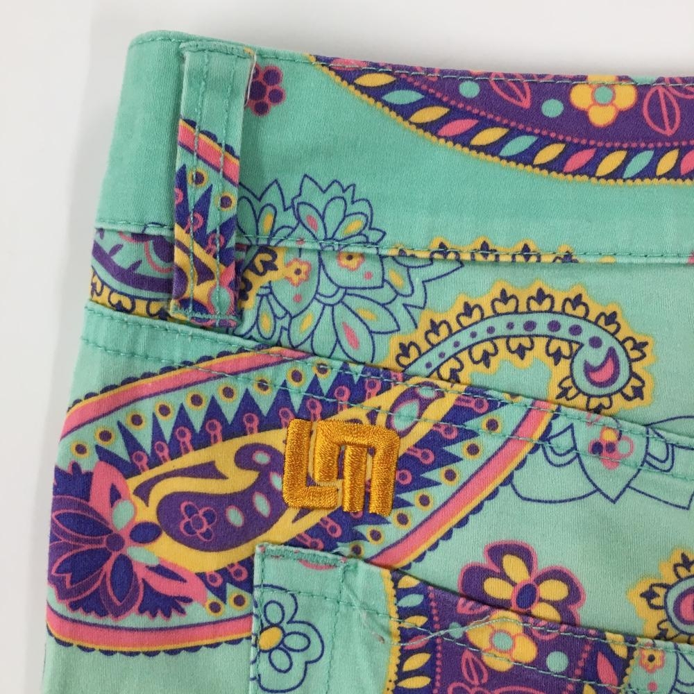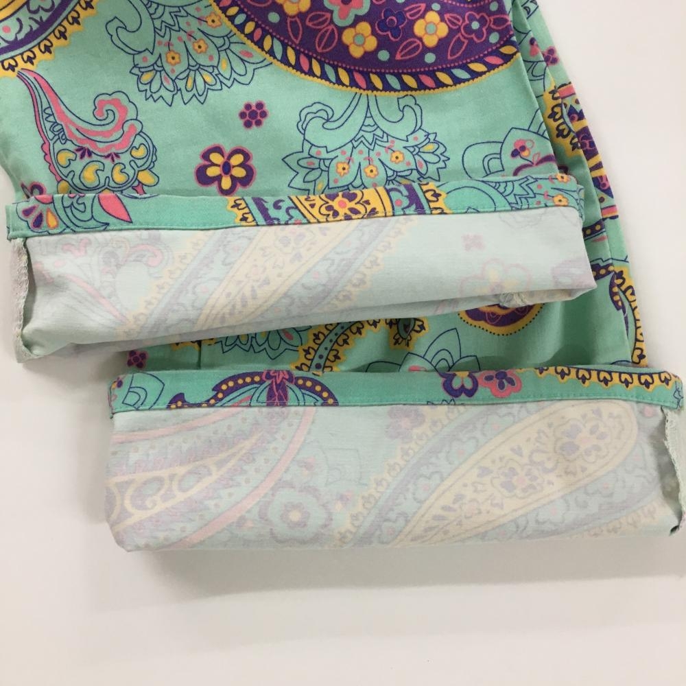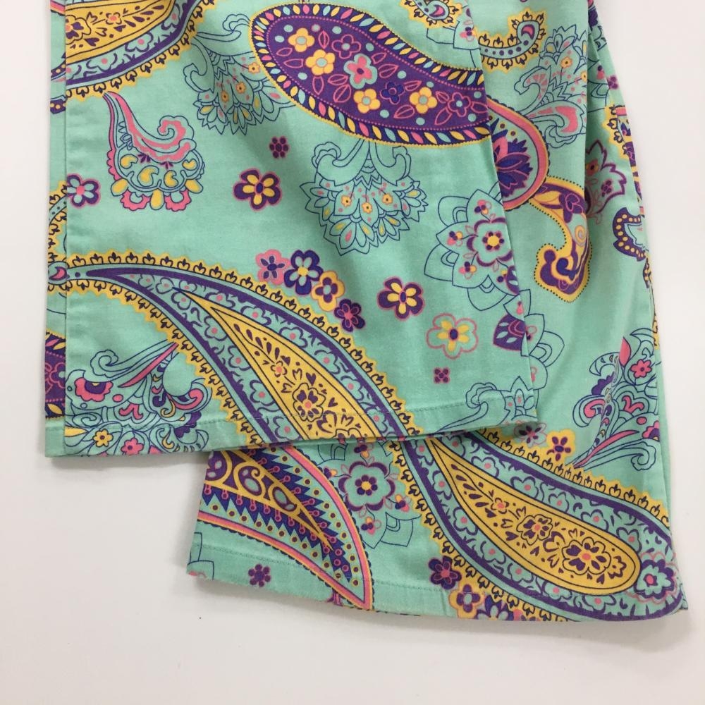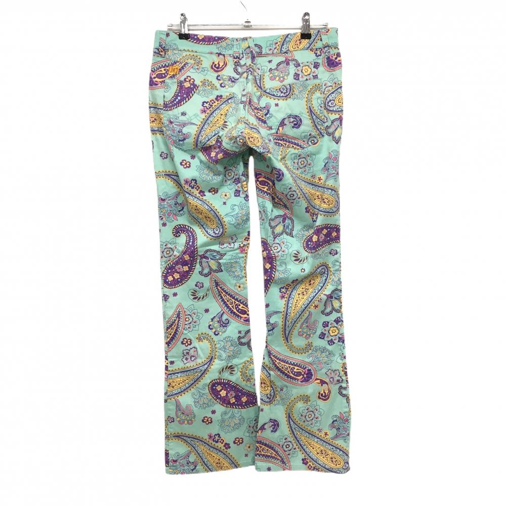 【美品】ラウドマウス パンツ エメラルドグリーン×パープル 総柄 ペイズリー風 レディース US-6 ゴルフウェア LOUDMOUTH