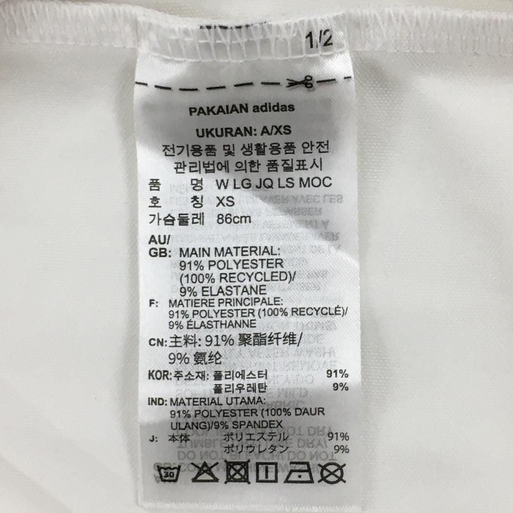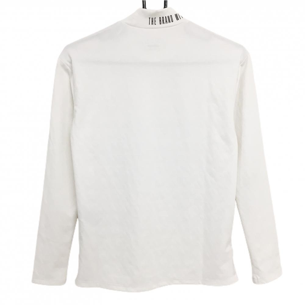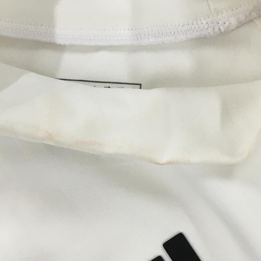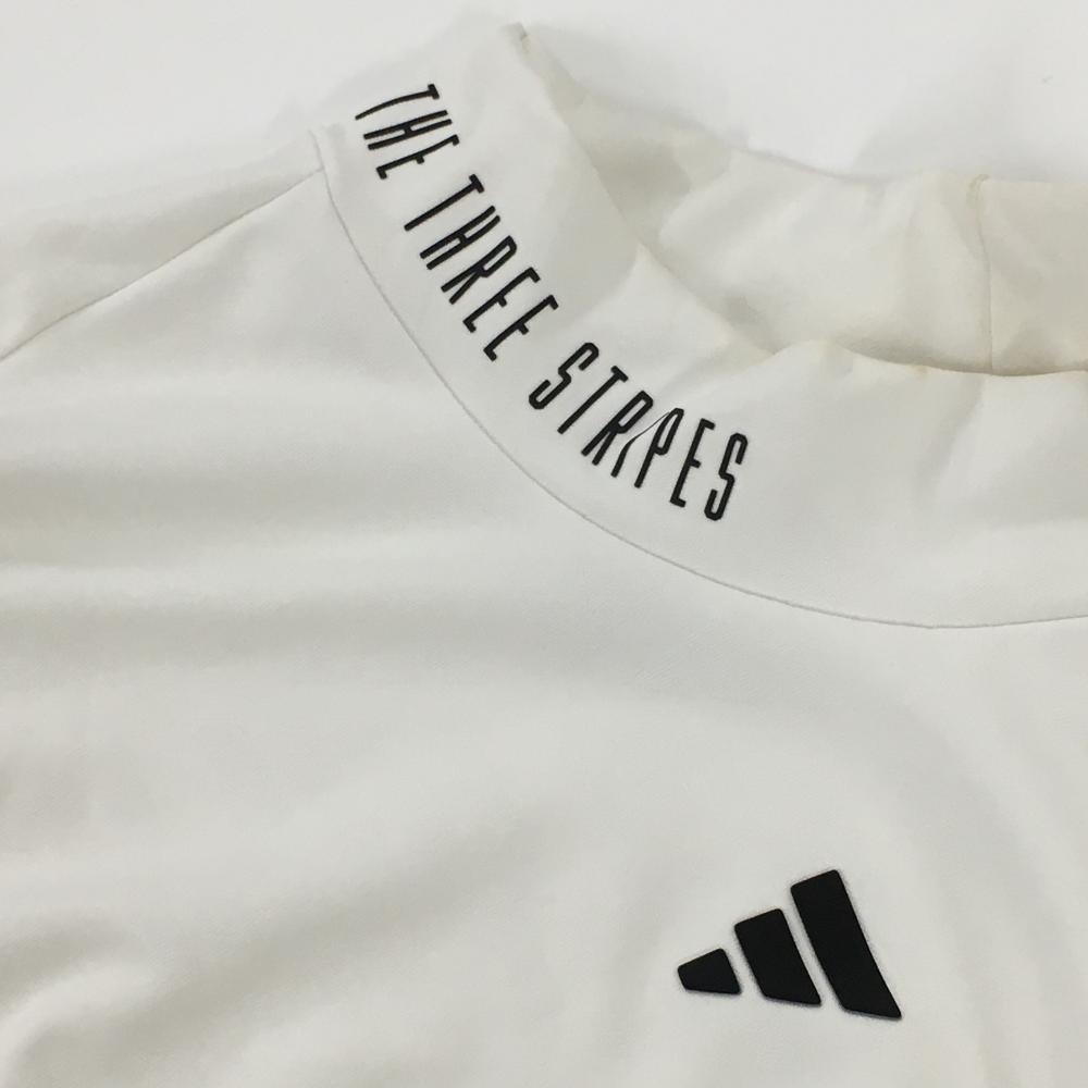 アディダス 長袖ハイネックシャツ 白 ロゴ総柄地模様 ネック英字ロゴ黒 レディース S ゴルフウェア 2024年モデル adidas