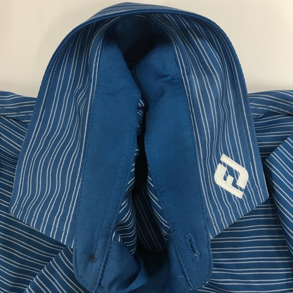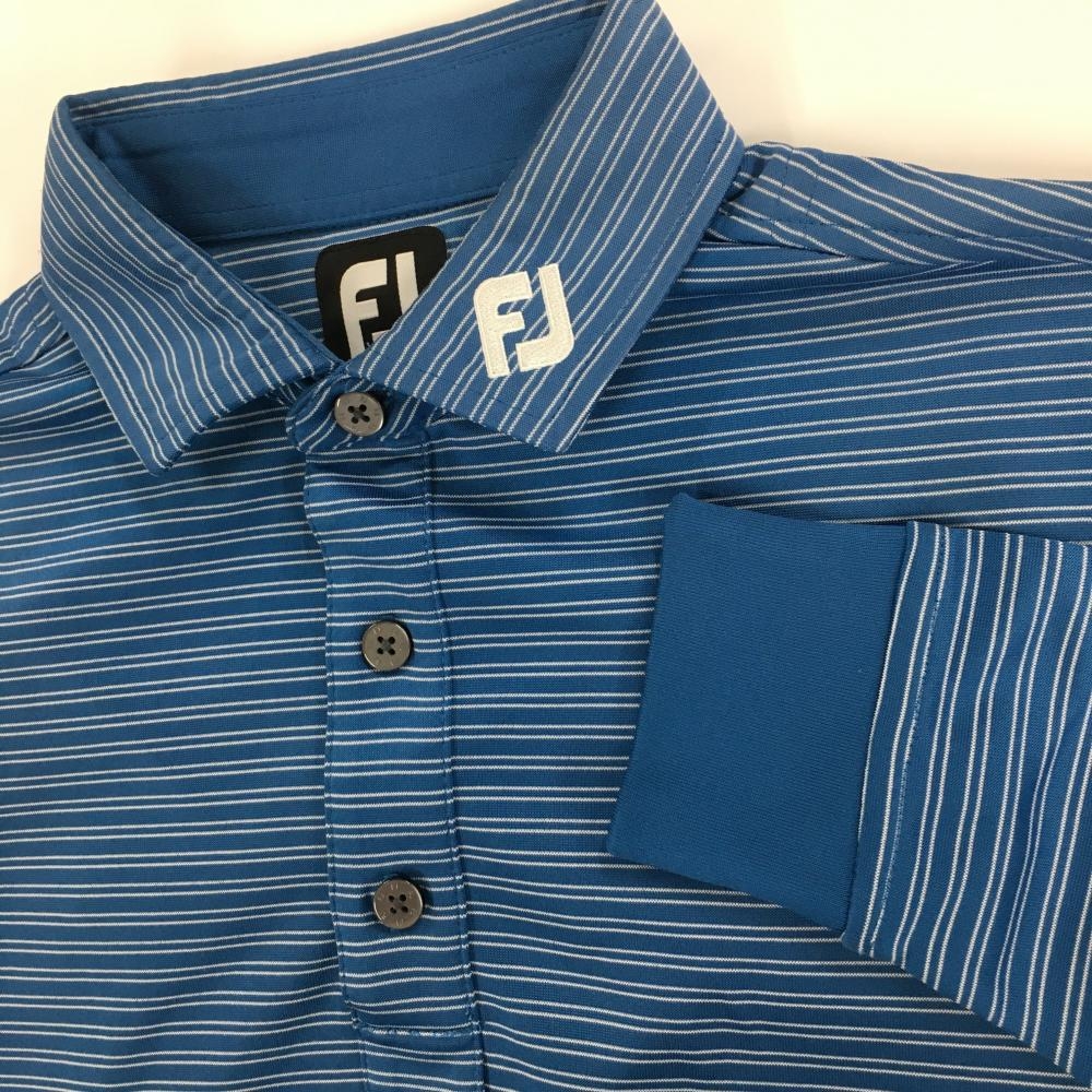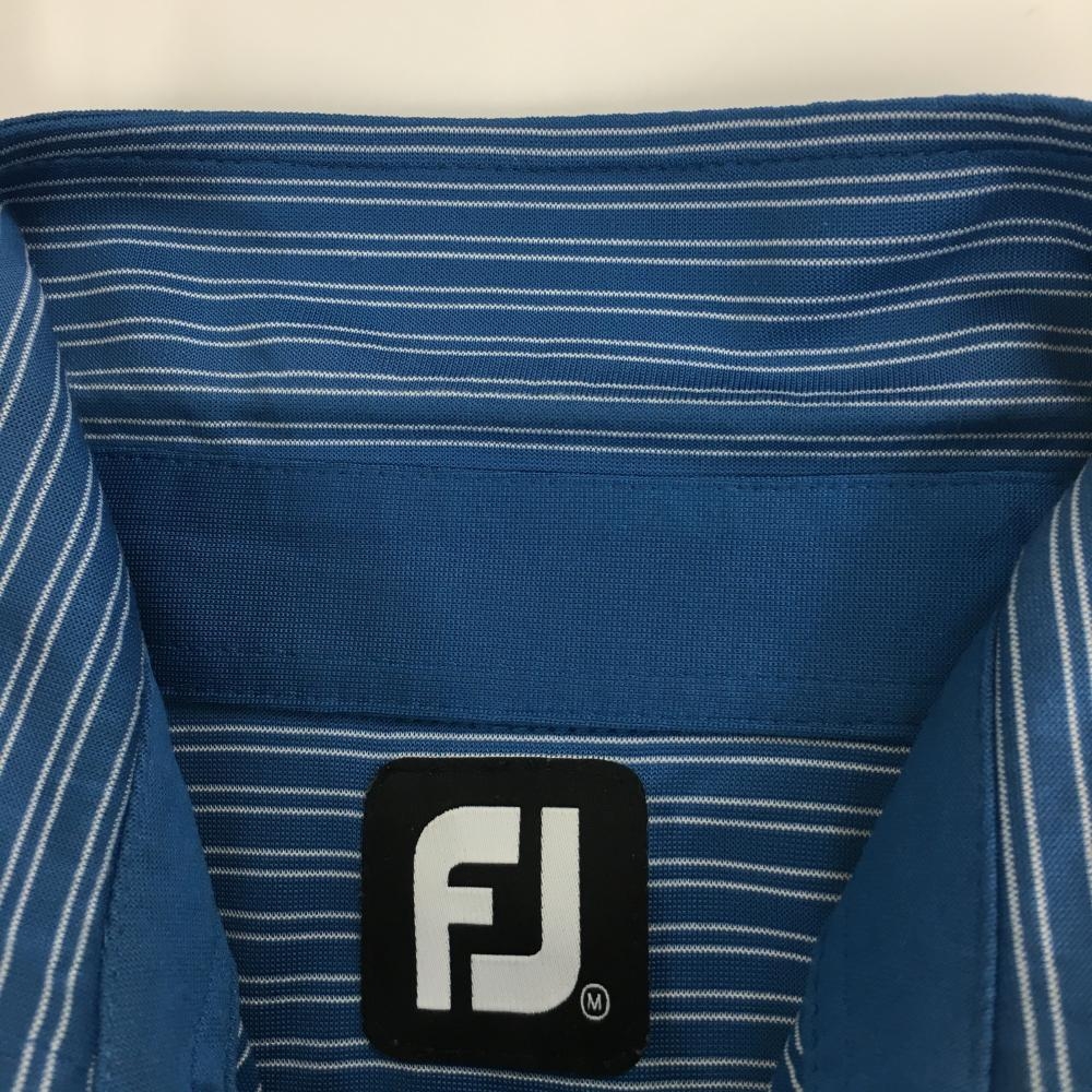 フットジョイ 長袖ポロシャツ ブルー×白 ボーダー メンズ M ゴルフウェア FootJoy