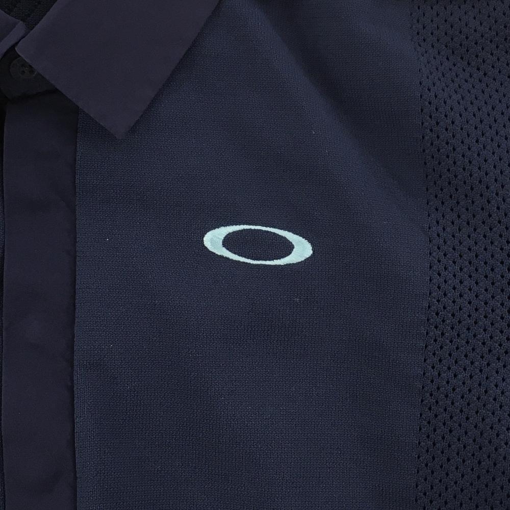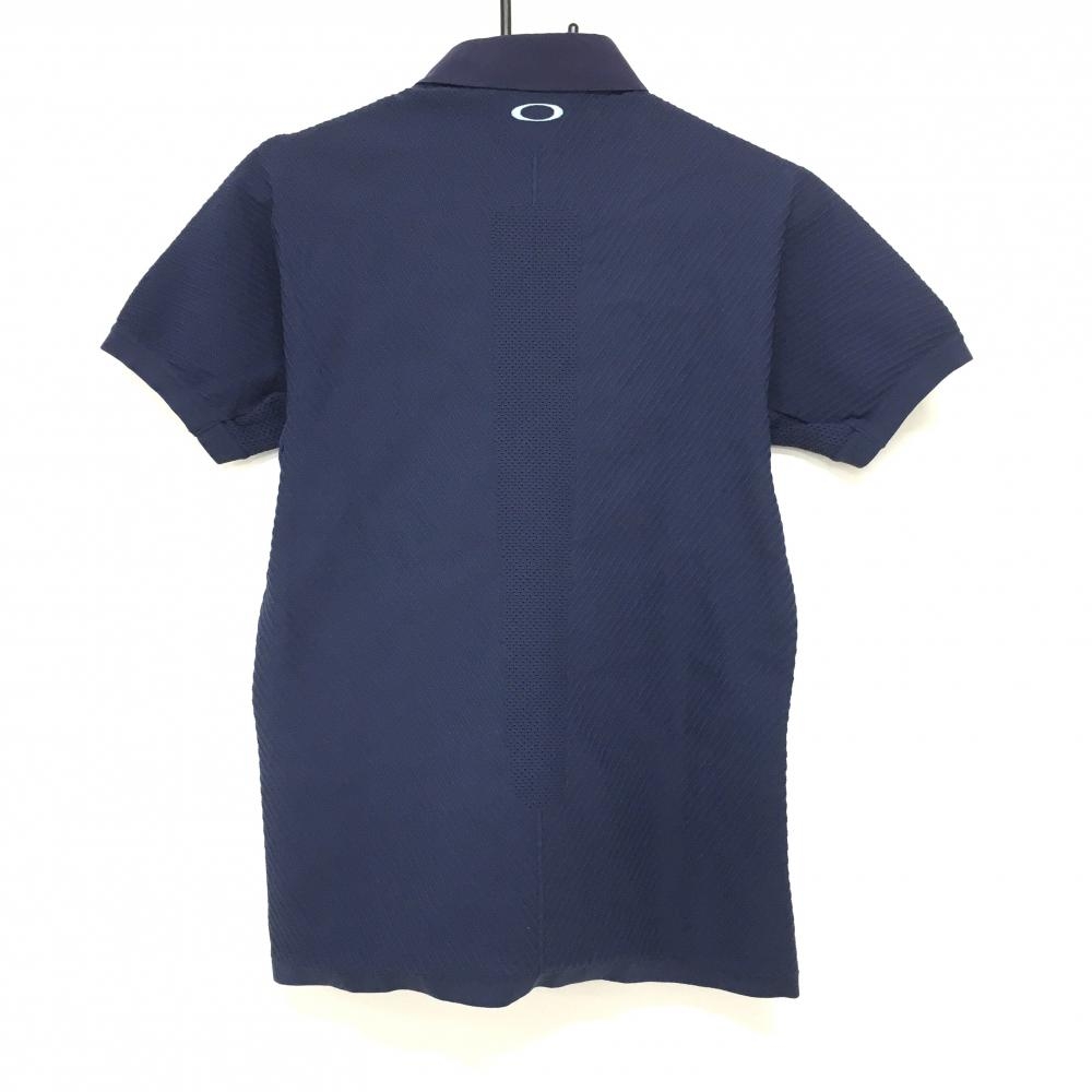 オークリー 半袖ニットポロシャツ ネイビー ロゴライトブルー メンズ M ゴルフウェア Oakley
