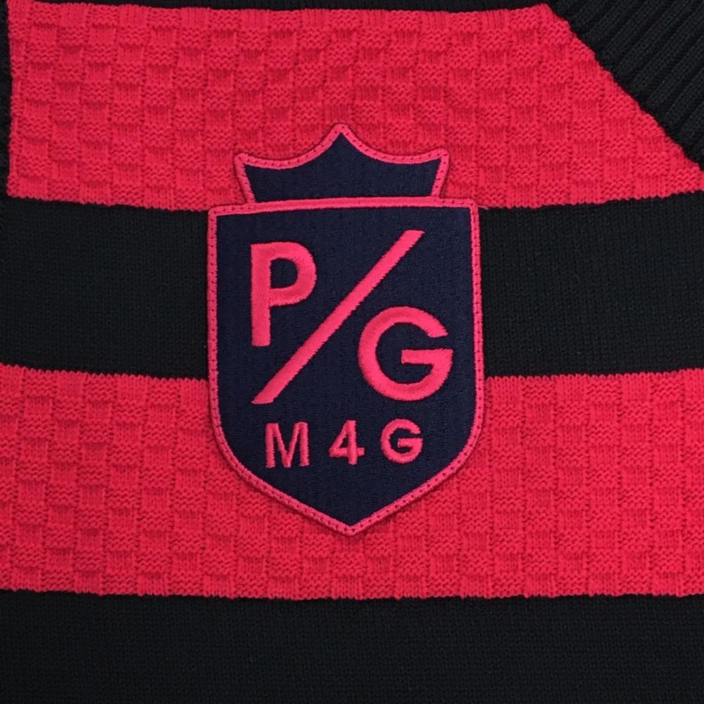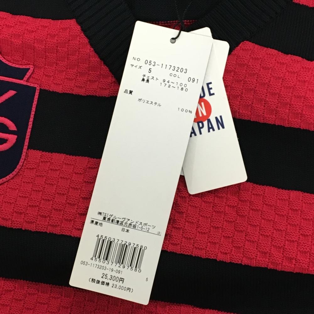 【新品】パーリーゲイツ ニットベスト ピンク×ダークネイビー 太ボーダー ブロックチェック編み メンズ 5(L) ゴルフウェア PEARLY GATES