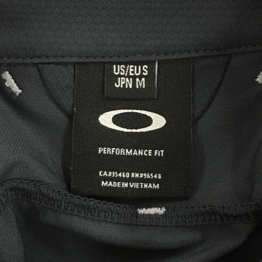 オークリー 半袖ポロシャツ グレー 袖ロゴ刺しゅう スナップボタン メンズ M ゴルフウェア Oakley