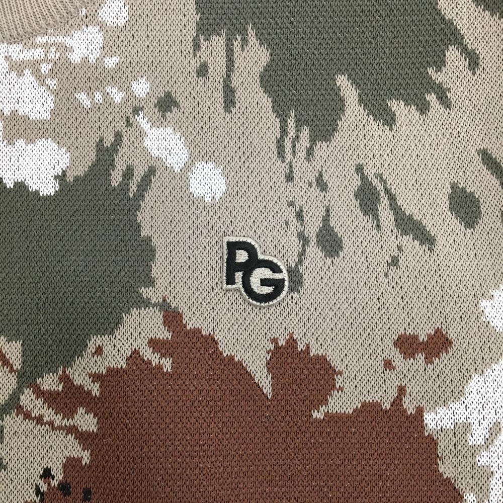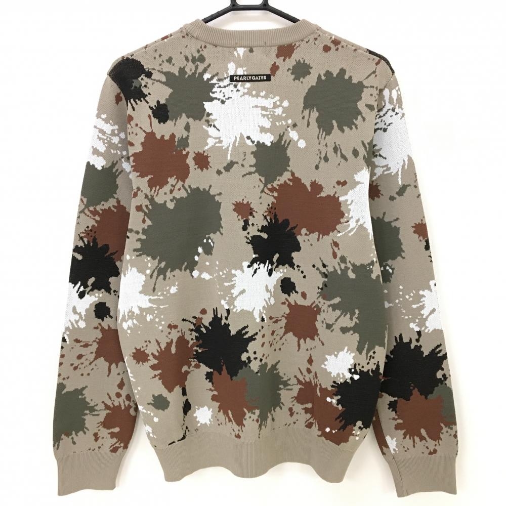 【新品】パーリーゲイツ セーター ベージュ系×グレー×ブラウン ペイント柄 ニット UVカット 遮熱 メンズ 5(L) ゴルフウェア PEARLY GATES
