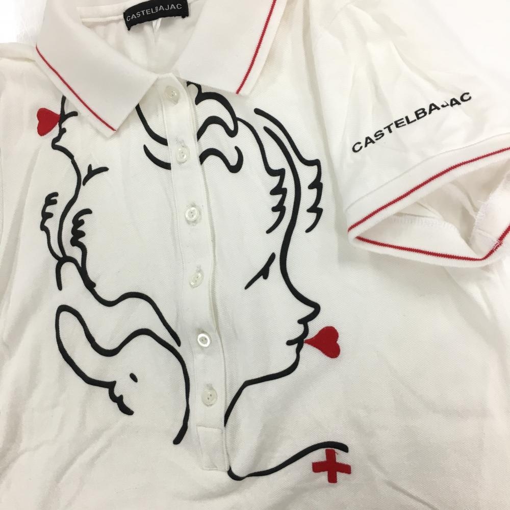 【美品】カステルバジャック 半袖ポロシャツ 白×黒 女性柄 レディース 2 ゴルフウェア CASTELBAJAC
