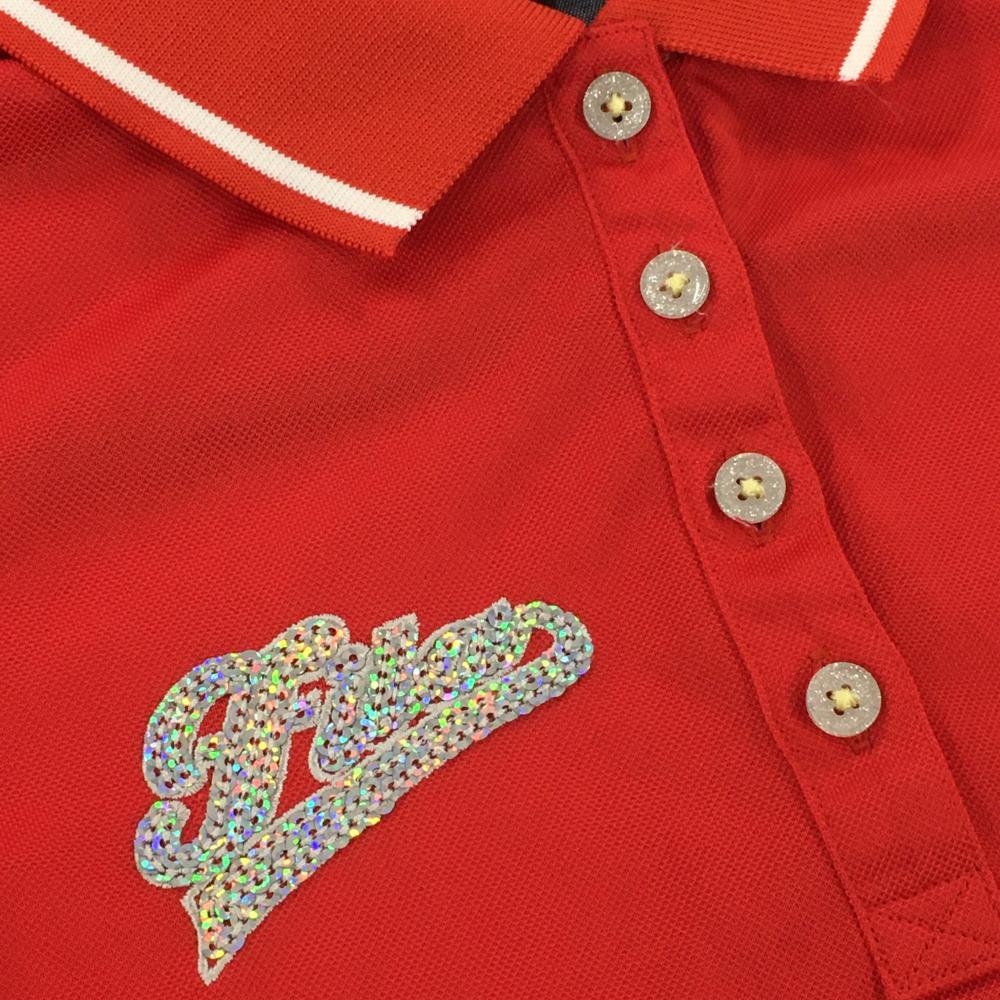 【超美品】フィラゴルフ 半袖ポロシャツ レッド×白 胸元ロゴ レディース M ゴルフウェア FILA GOLF