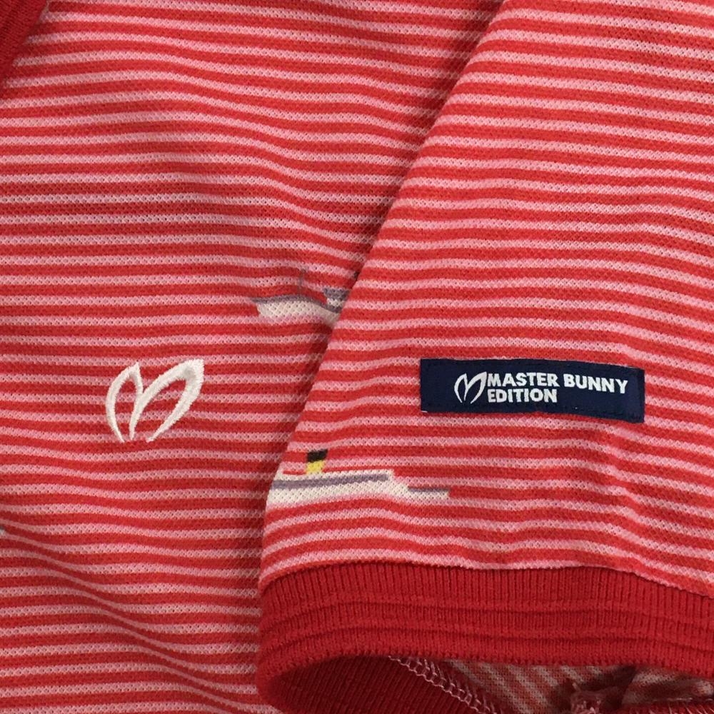 マスターバニー 半袖ポロシャツ レッド×ライトピンク 細ボーダー 船柄 レディース 2 ゴルフウェア MASTER BUNNY EDITION