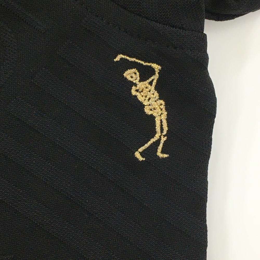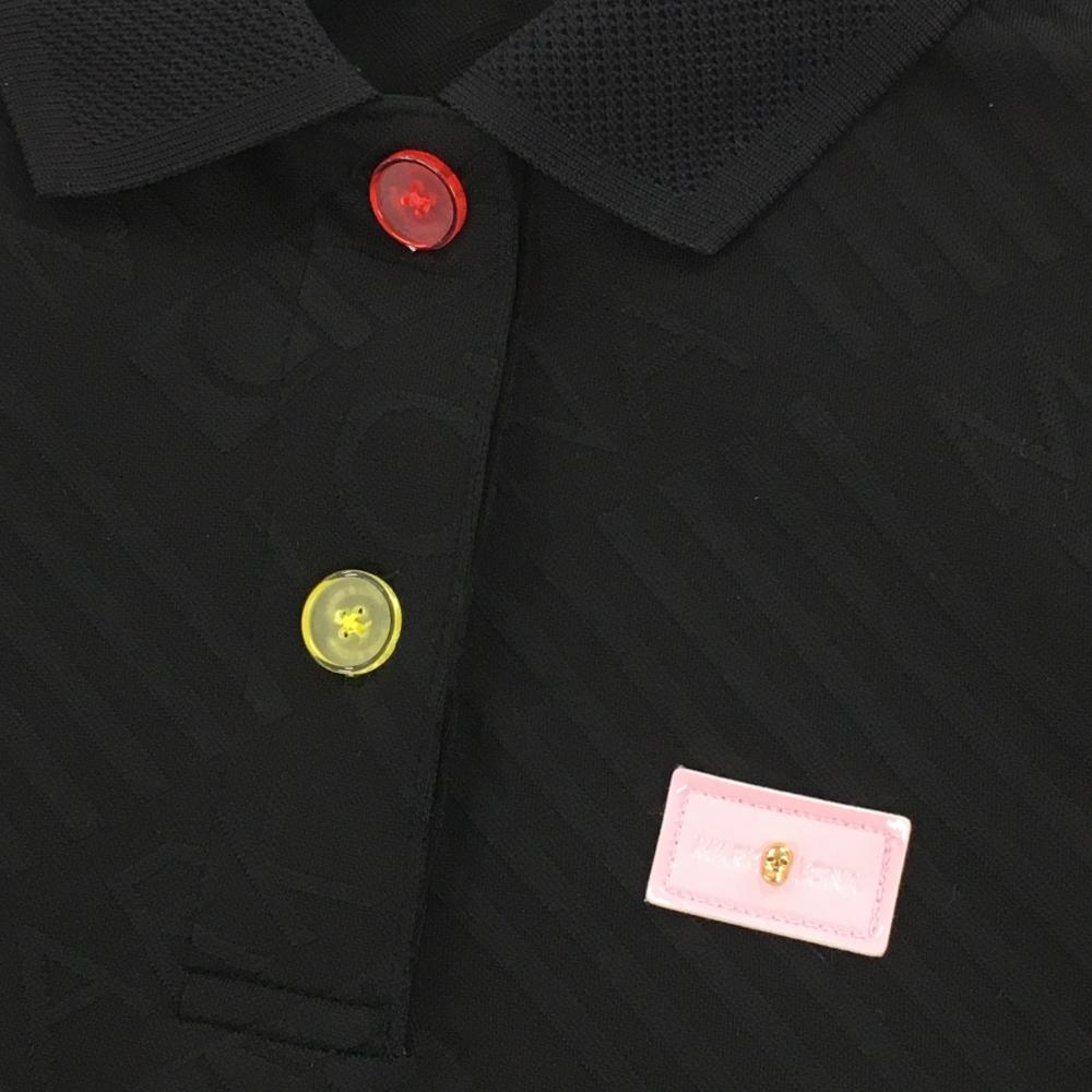 【美品】マークアンドロナ 半袖ポロシャツ 黒 ロゴ総柄地模様 スカル レディース S ゴルフウェア MARK&LONA