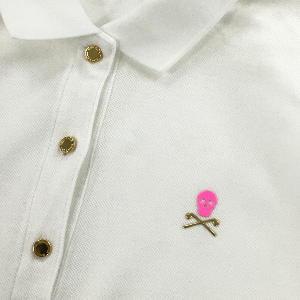 【美品】マークアンドロナ ノースリーブポロシャツ 白 胸スカル レディース 40(L) ゴルフウェア MARK&LONA
