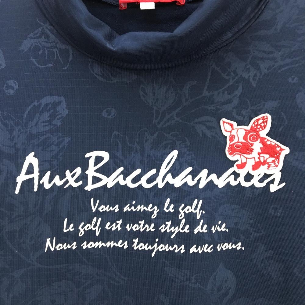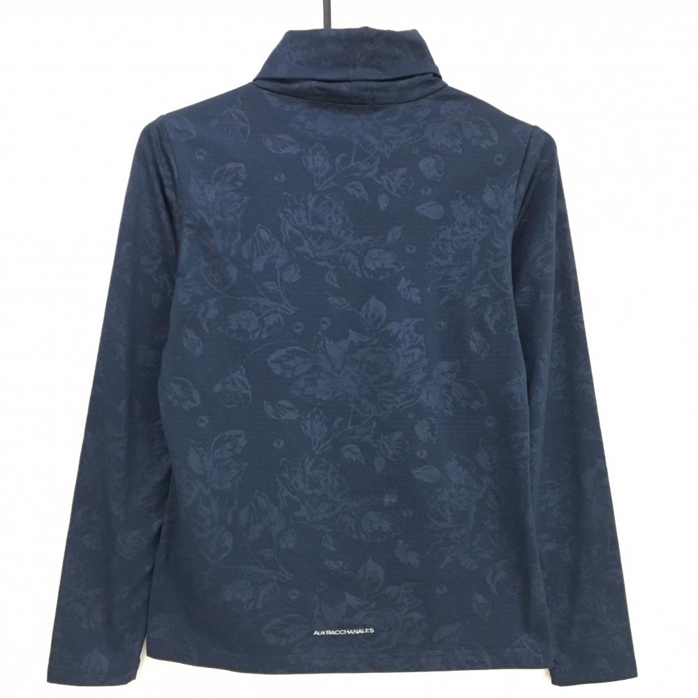 【超美品】オーバカナル 長袖タートルネックシャツ ネイビー 花柄地模様 裏微起毛 レディース 1 ゴルフウェア AUX BACCHANALES