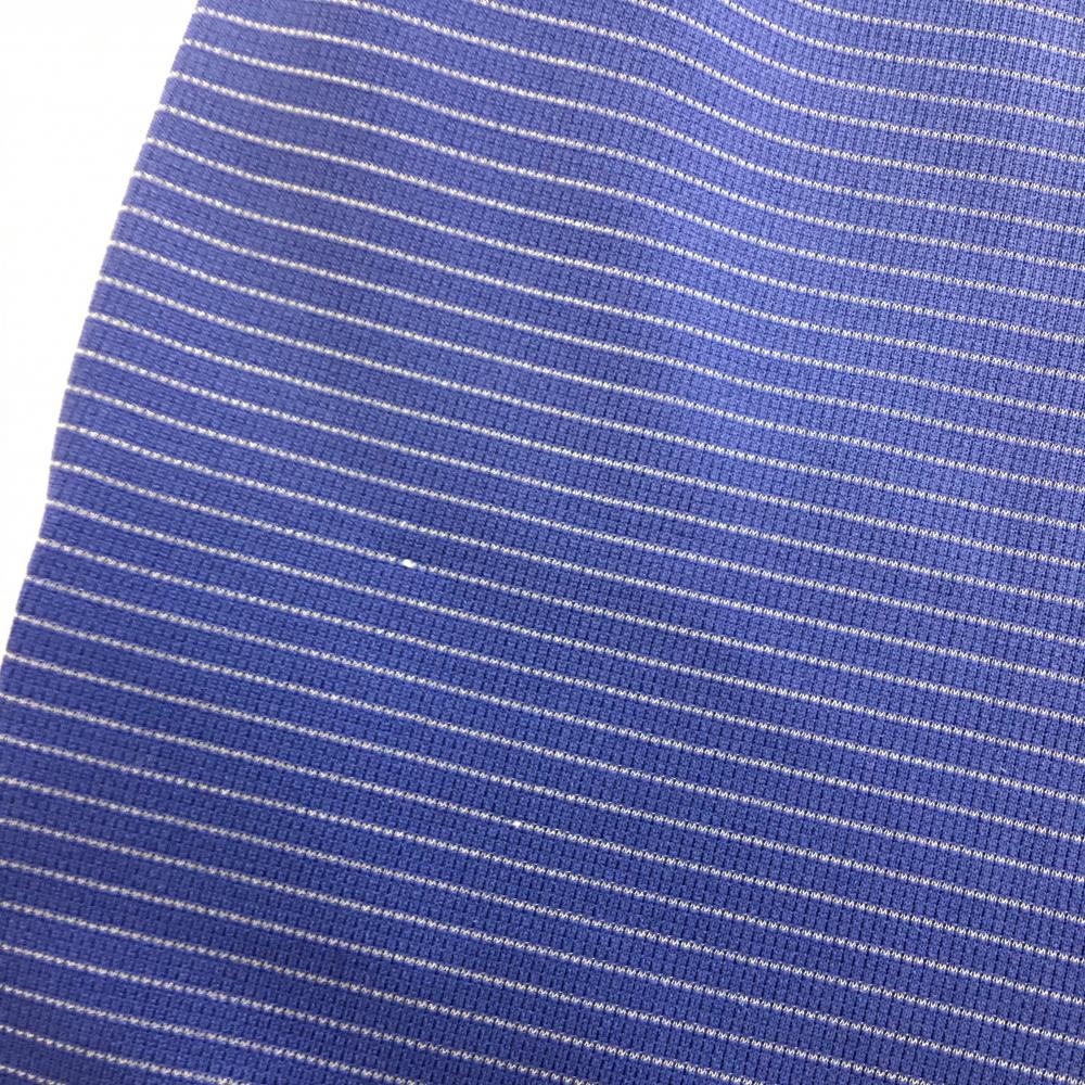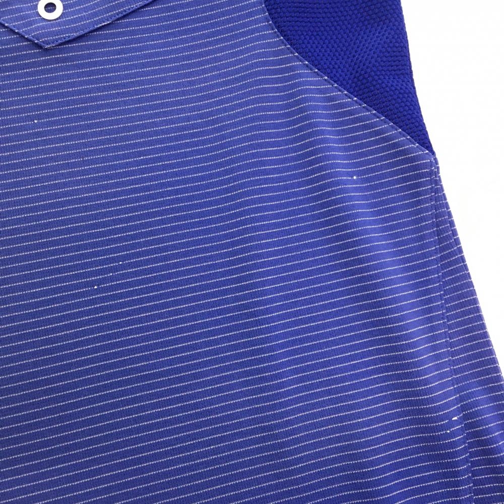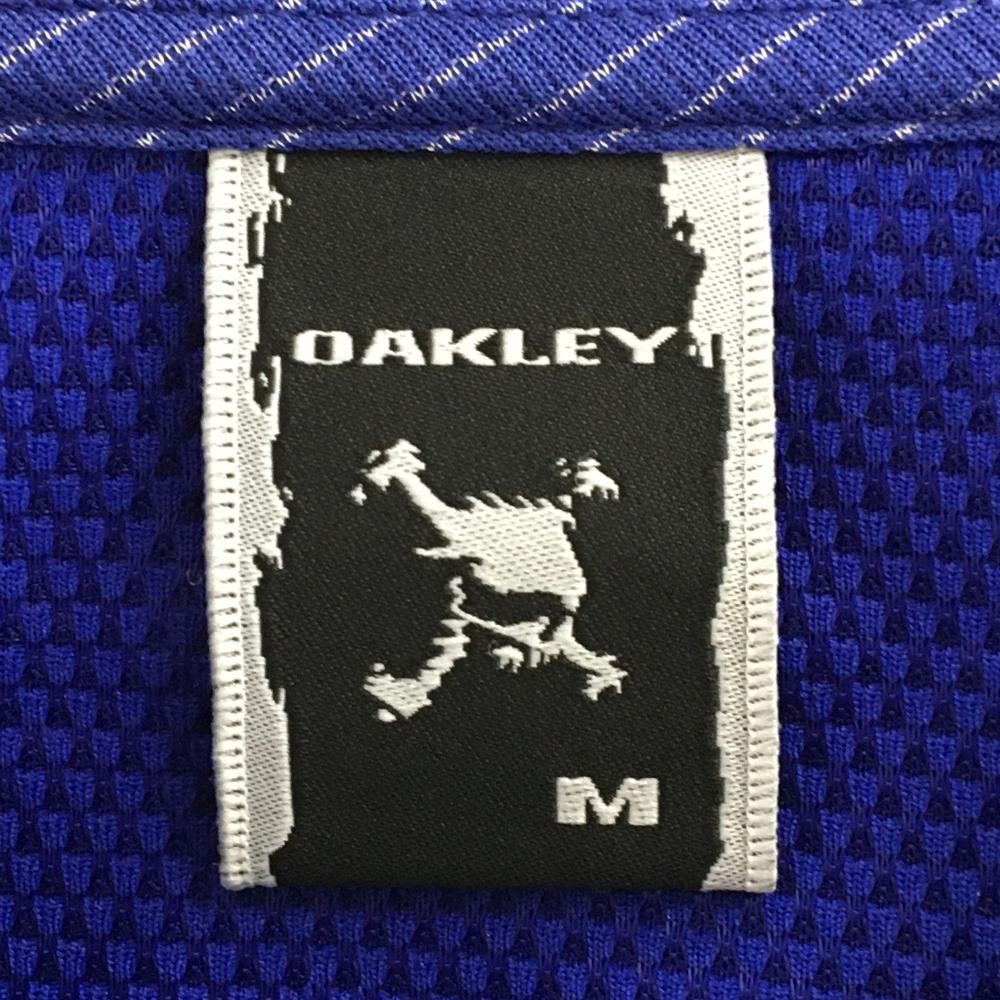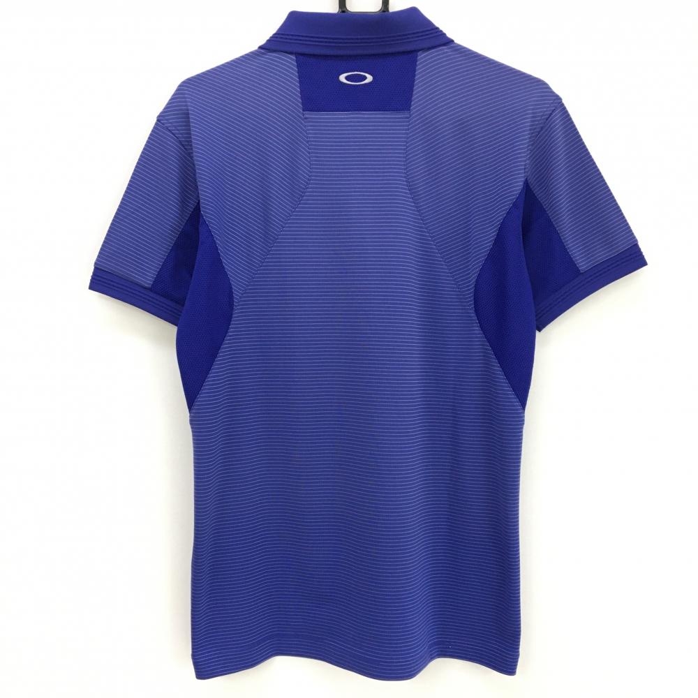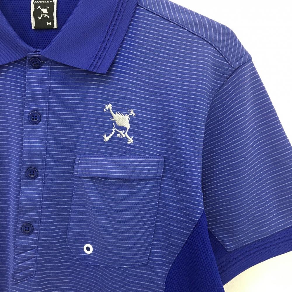 オークリー 半袖ポロシャツ ブルー×シルバー ボーダー 胸ポケット メンズ M ゴルフウェア Oakley