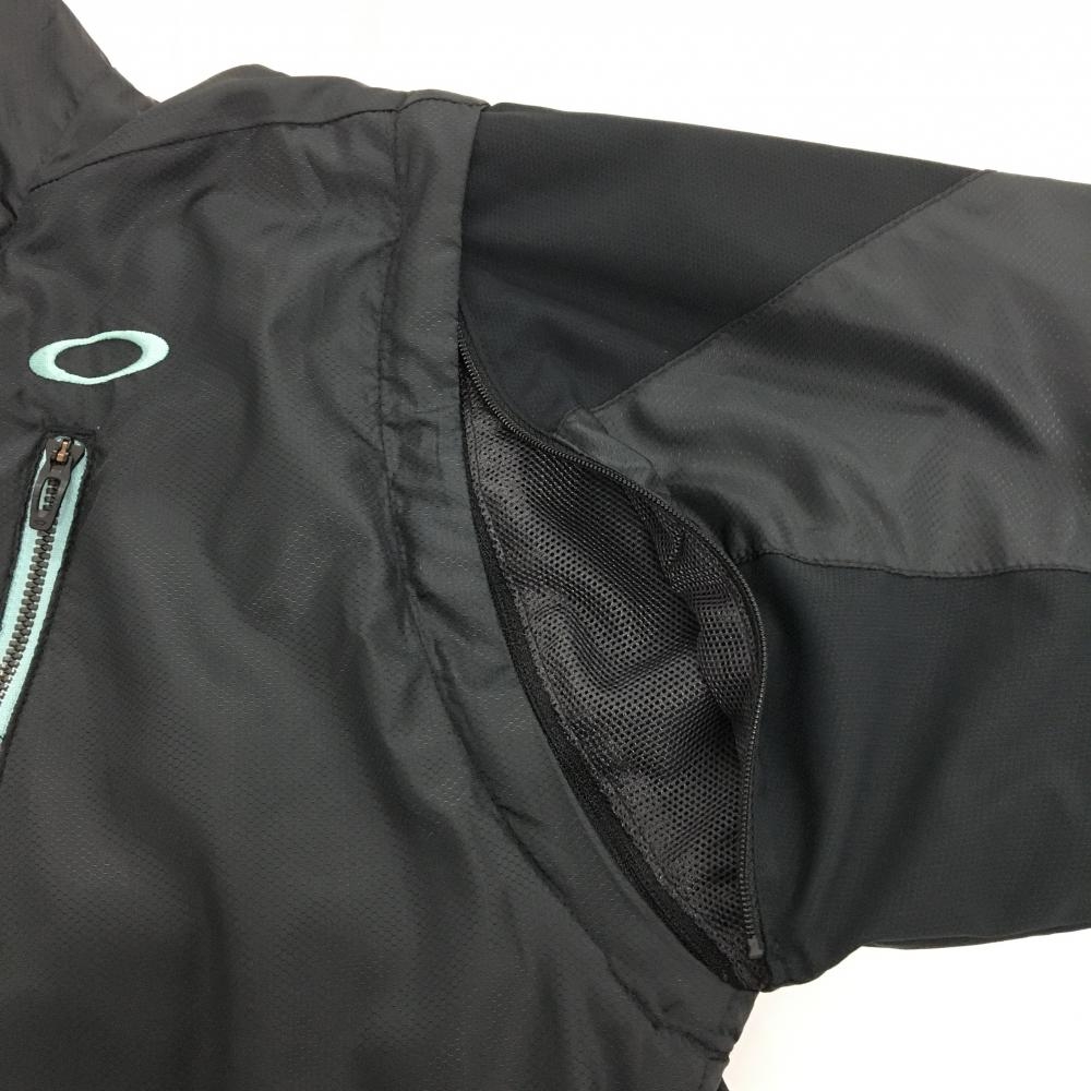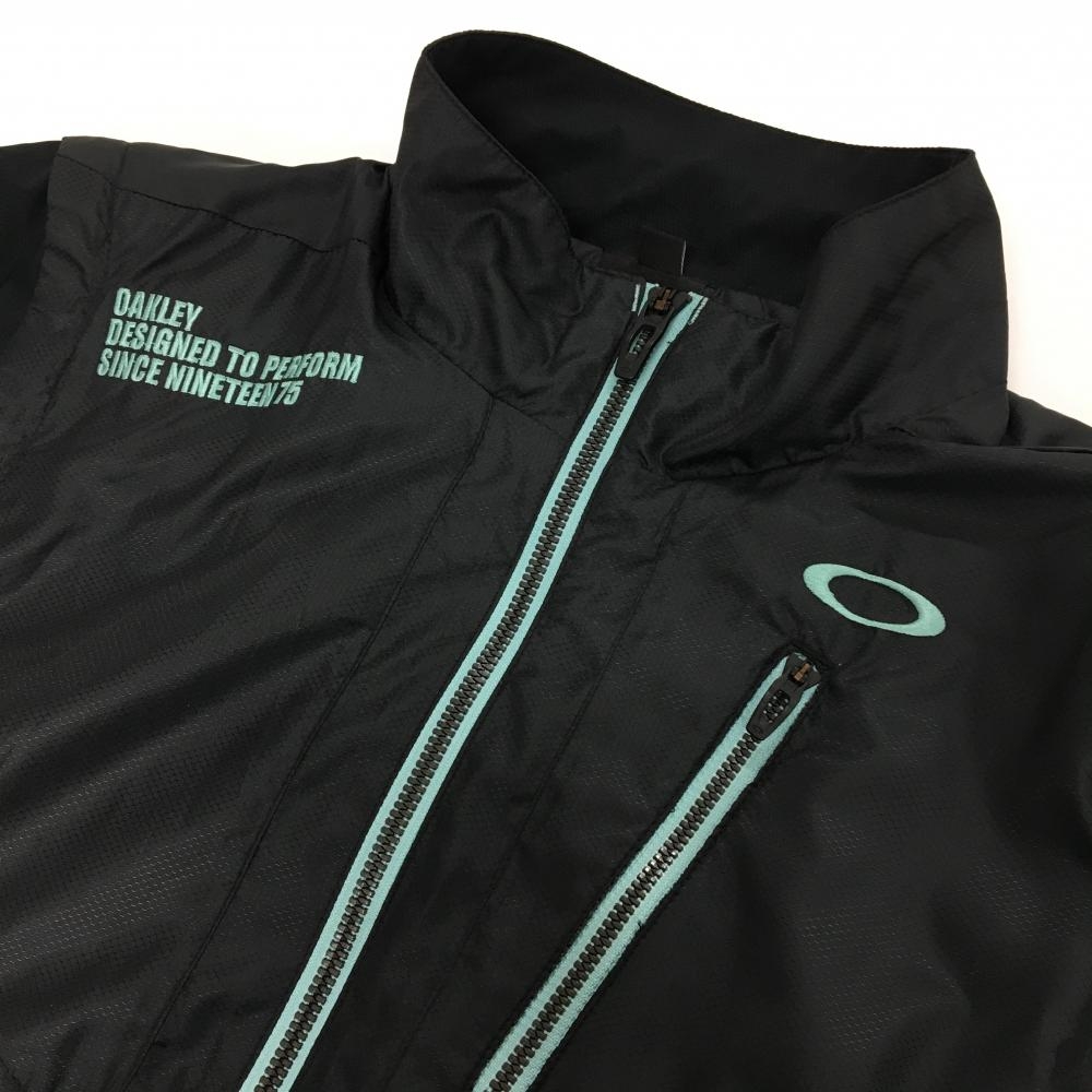 【超美品】オークリー 2WAYジャケット 黒×ライトブルー 袖着脱可 裏地メッシュ メンズ M ゴルフウェア Oakley