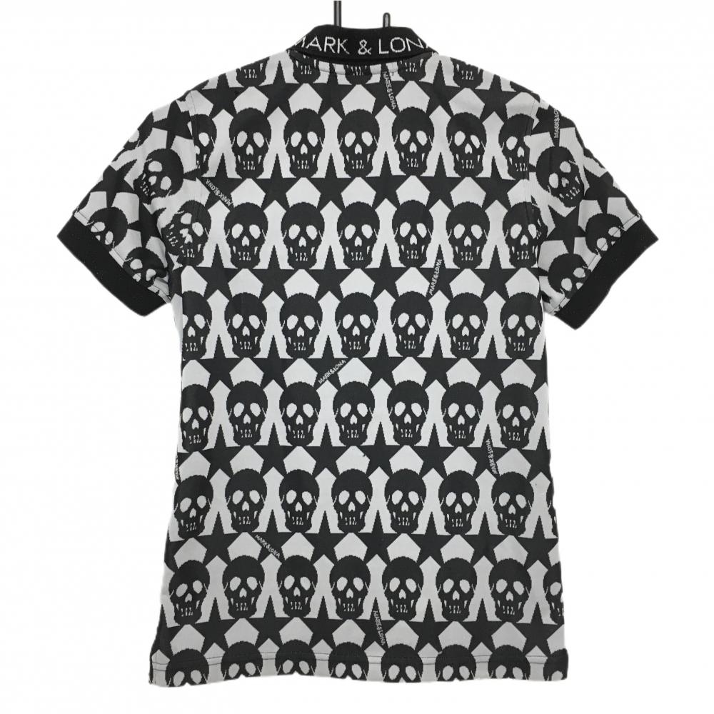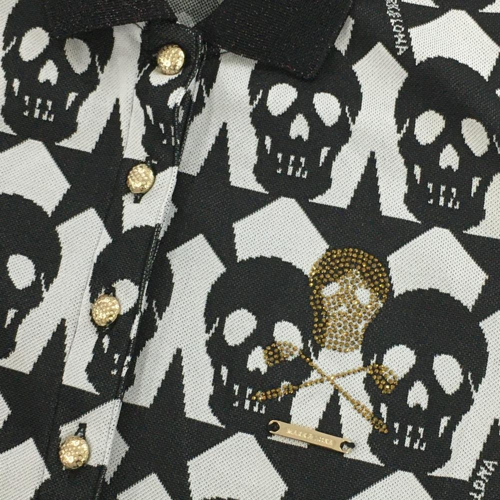 マークアンドロナ 半袖ポロシャツ 黒×グレー スカル柄 星柄 ラインストーン レディース M ゴルフウェア MARK&LONA