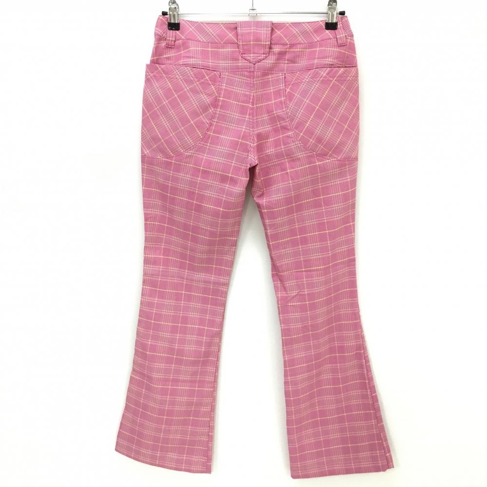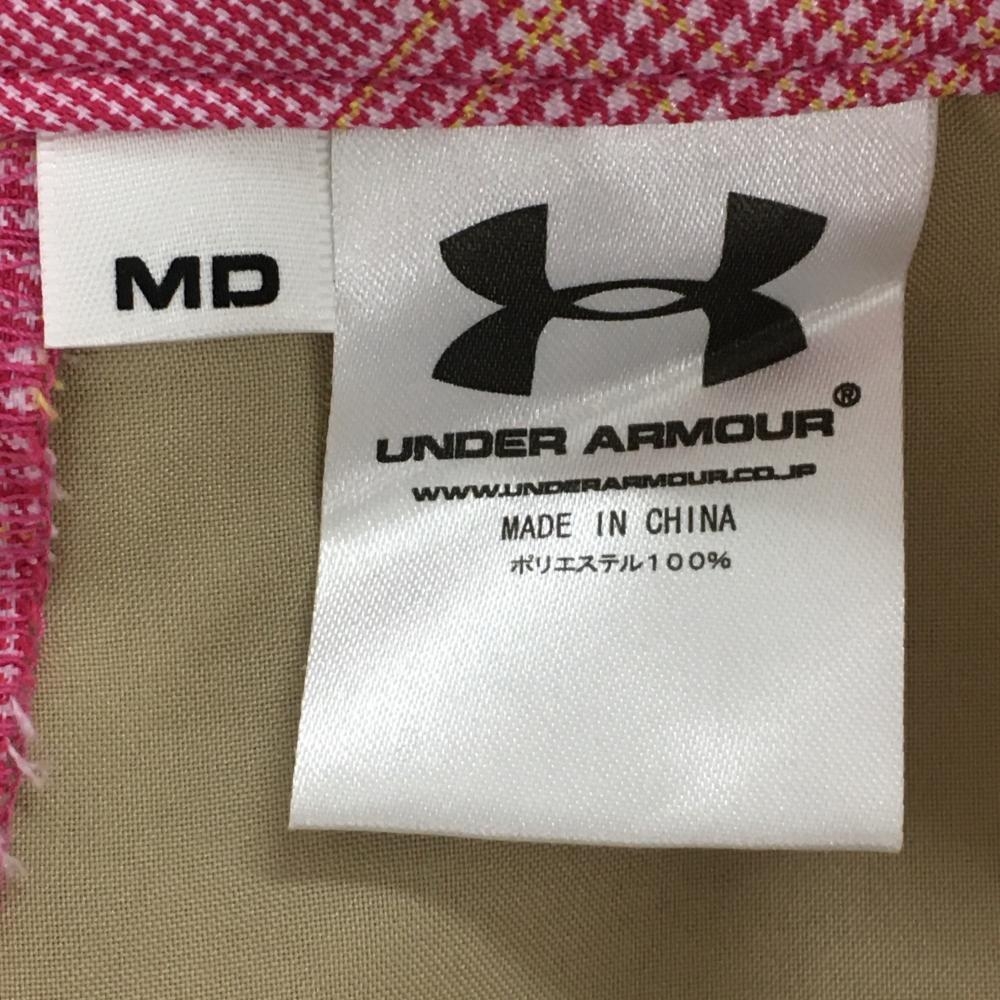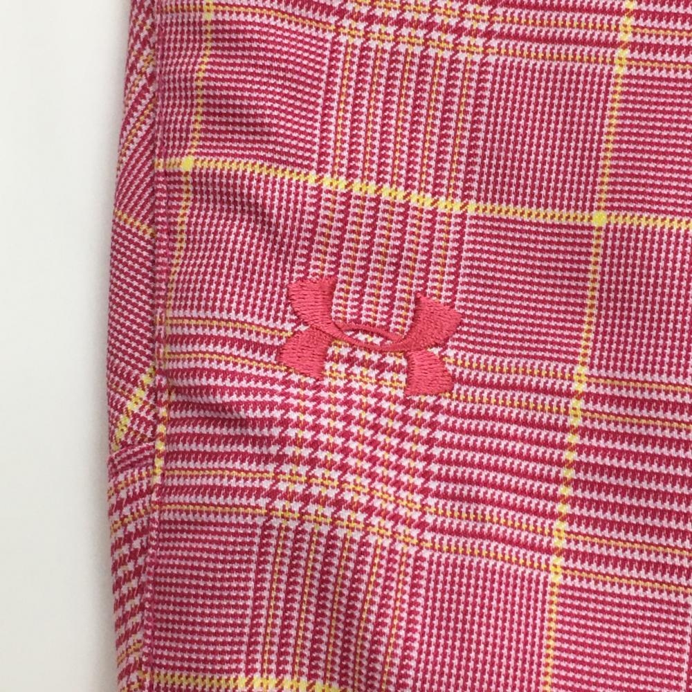 【超美品】アンダーアーマー パンツ ピンク×イエロー グレンチェック レディース MD ゴルフウェア UNDER ARMOUR