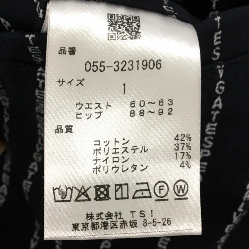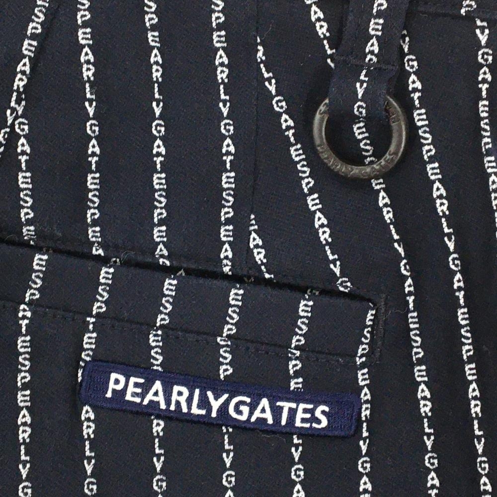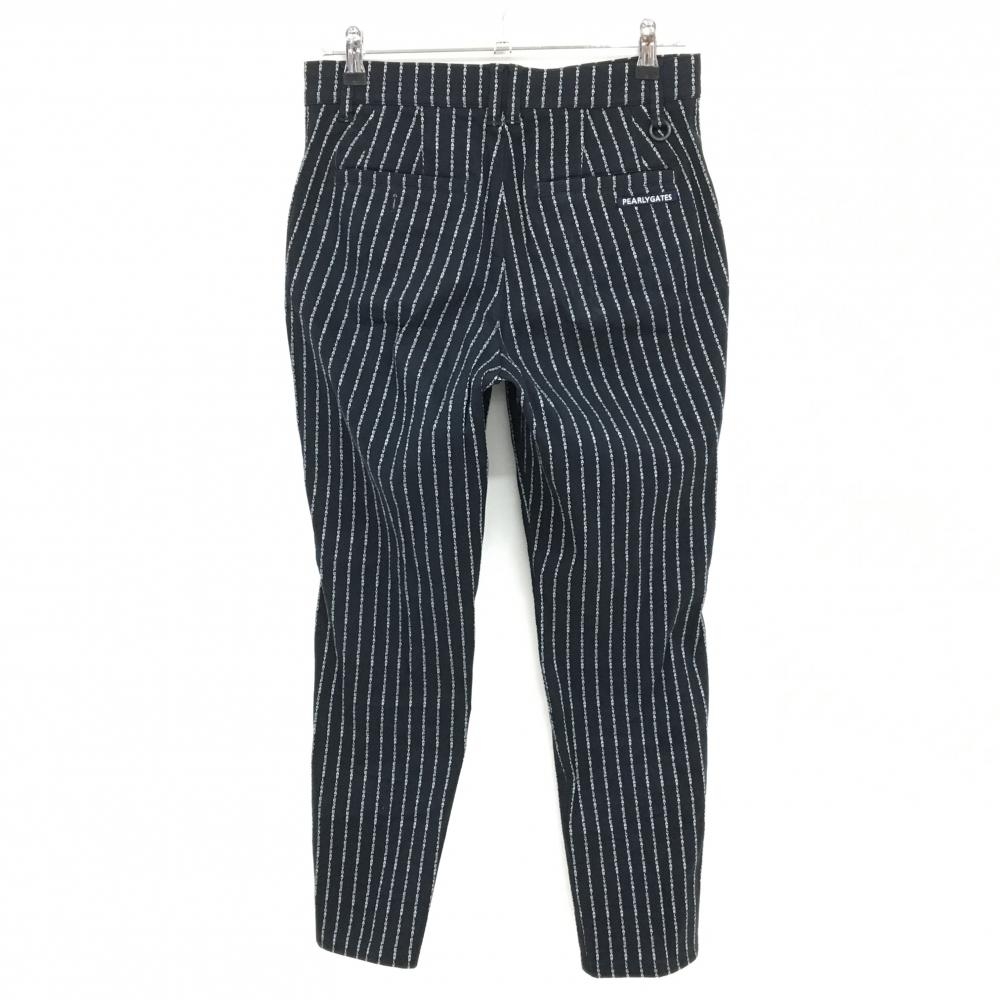 【美品】パーリーゲイツ ストレッチパンツ ネイビー×白 ロゴ ストライプ レディース 1(M) ゴルフウェア 2023年モデル PEARLY GATES