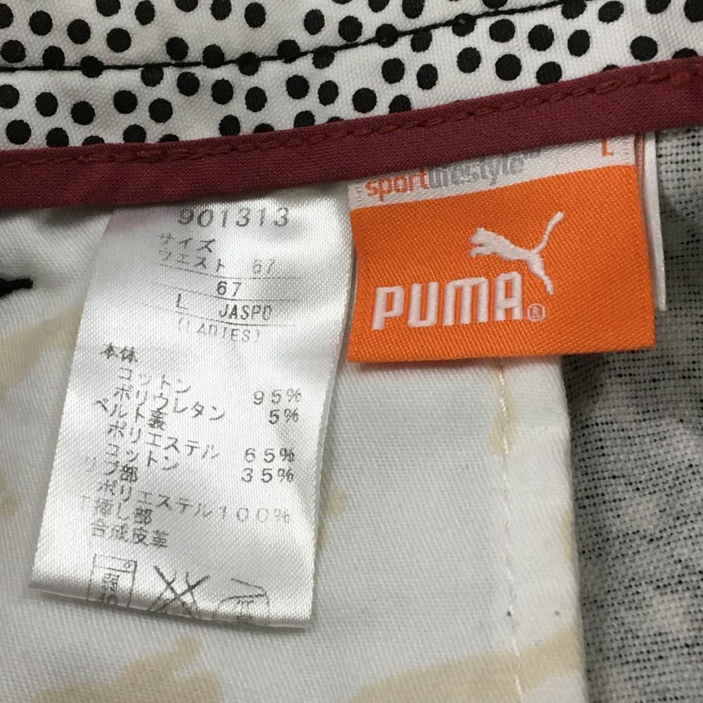 【美品】プーマ パンツ グレー×ライトベージュ 千鳥格子 ストレッチ レディース L ゴルフウェア PUMA