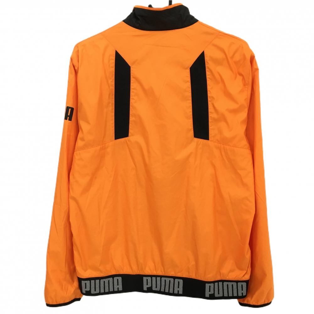 プーマ ジャケット オレンジ×黒 後裾ゴムロゴ 地模様 裏地メッシュ メンズ M ゴルフウェア PUMA